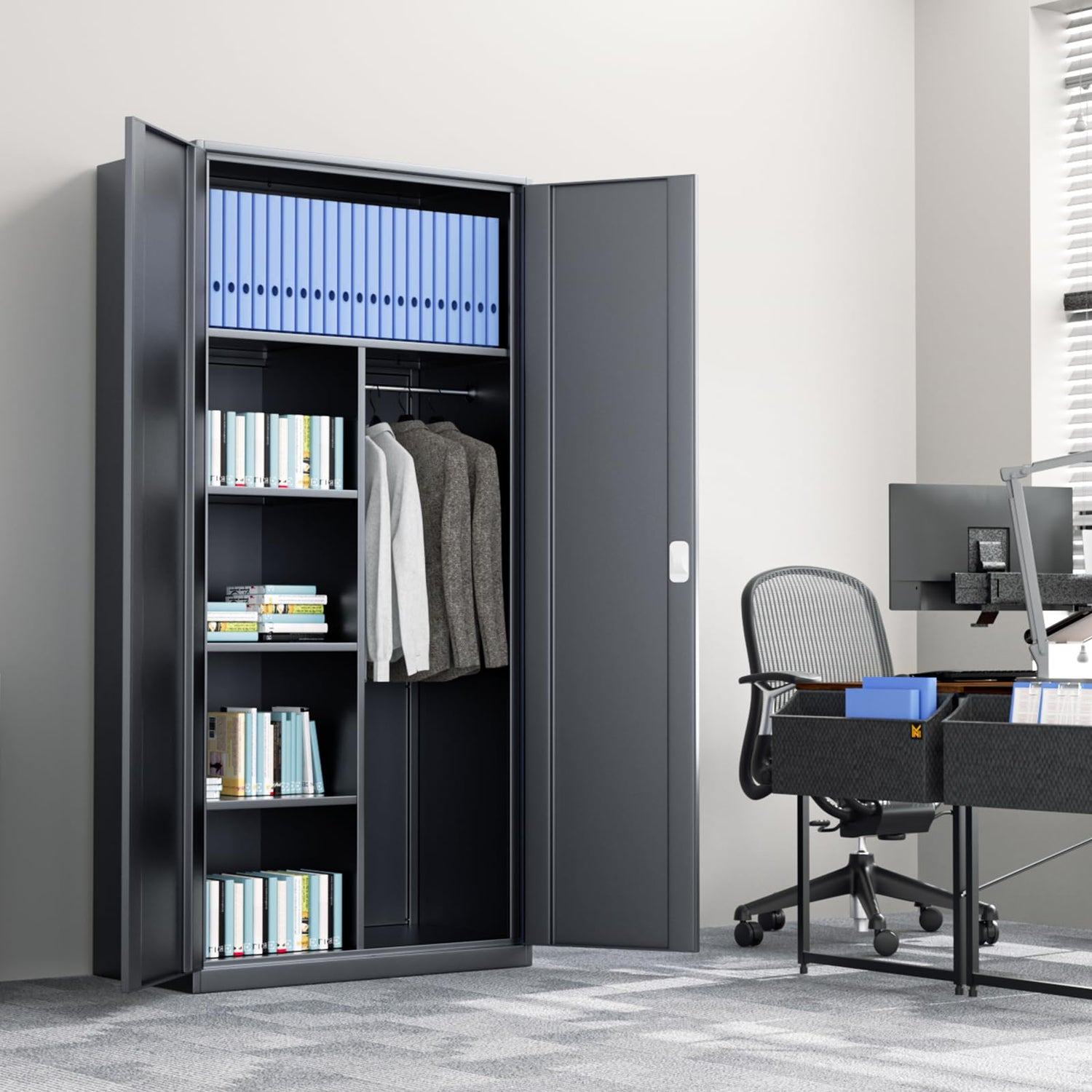 Athena Collection 72" Metal Storage Cabinet, 6 Tier Storage Cabinet with Hanging Rod and Removable Shelves, Lockable Tall Cabinet Tool Storage Unit Cabinet for Office Bedroom Garage, Gray