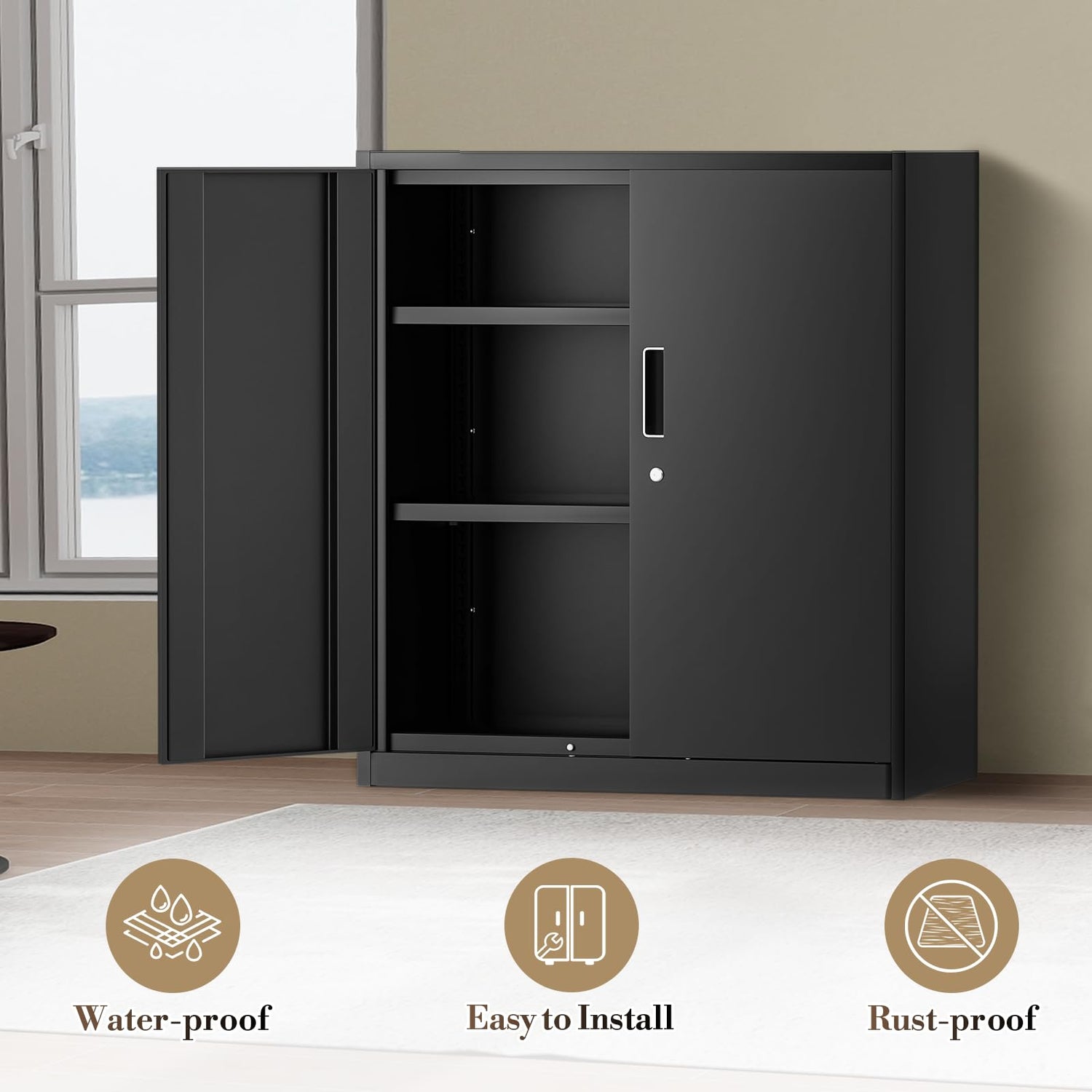 Athena Collection Metal Storage Cabinet with Doors and Shelves, 36" Garage Storage Cabinet with Lock for File, Home, Office, School, Garage, Black