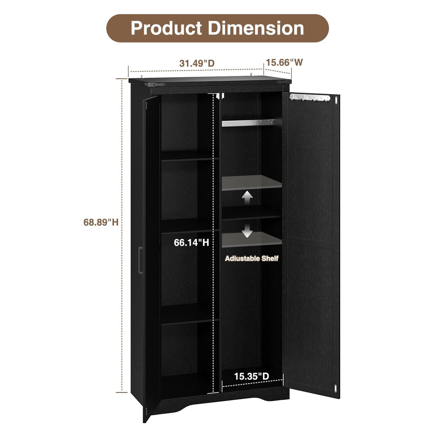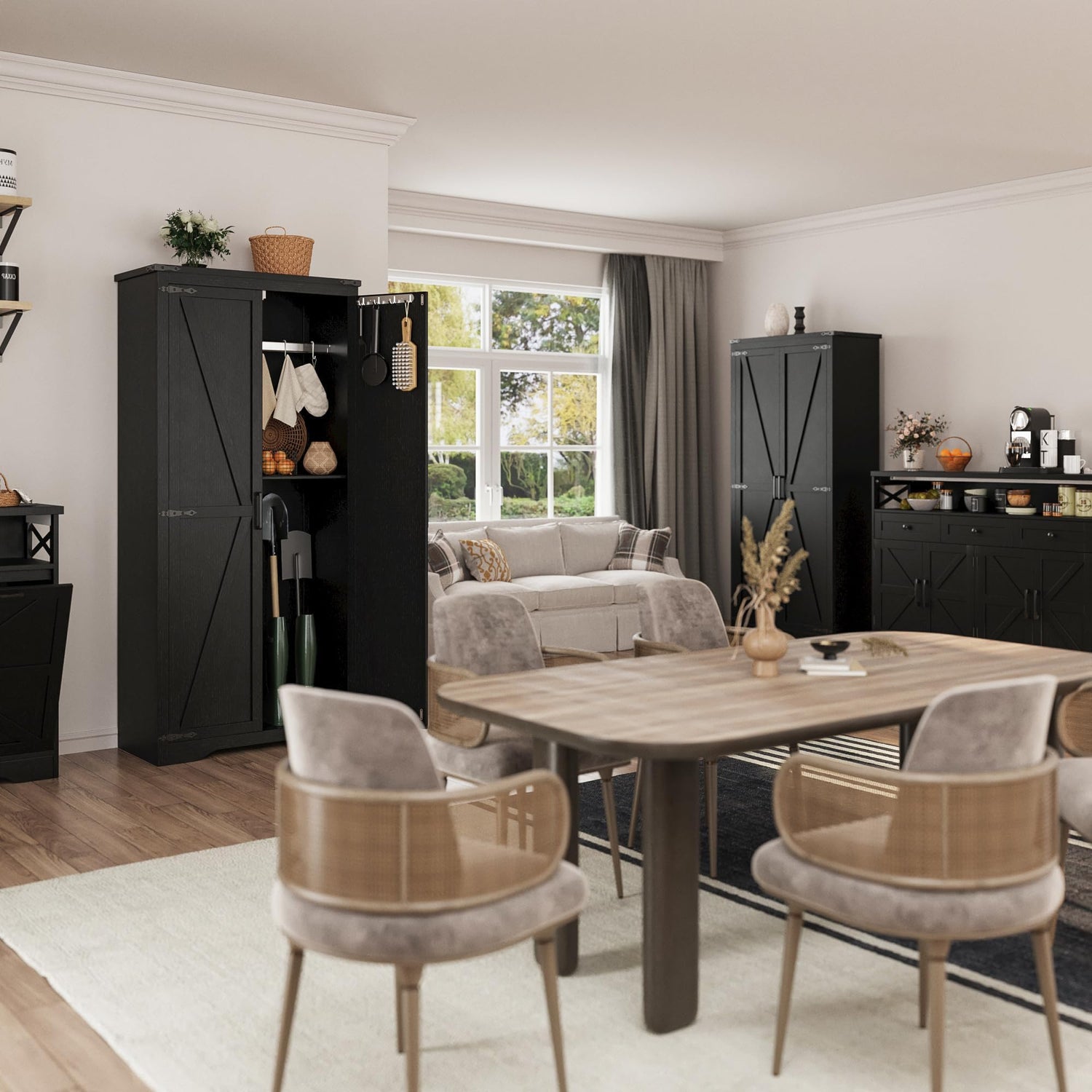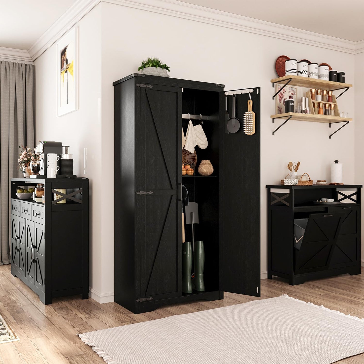 Befrases 72" H Black Farmhouse Storage Cabinet with Adjustable Shelves, Large Pantry Organize with 2 Barn Doors, Tall Freestanding Cabinet for Kitchen, Bathroom, Garage, Basement, Living, Utility Room