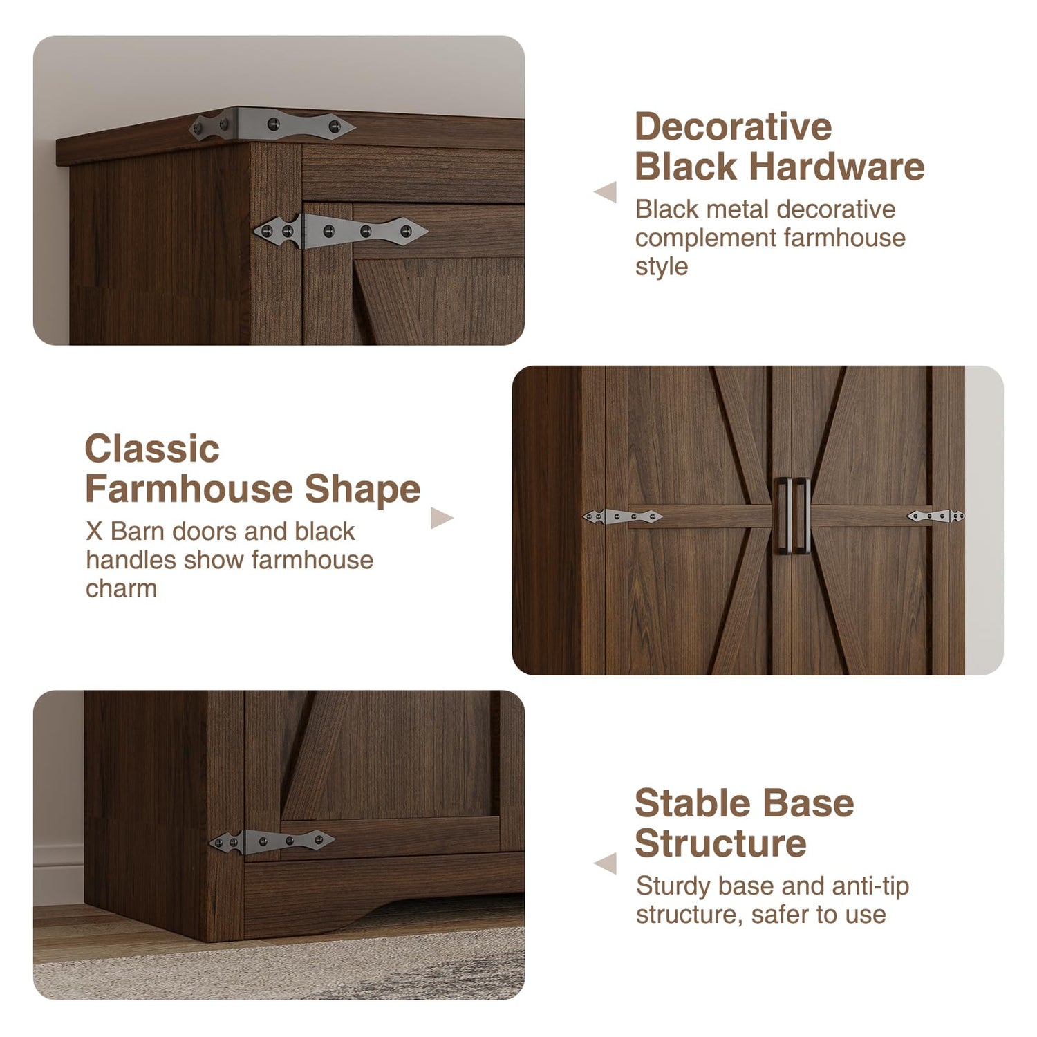Befrases 72" H Farmhouse Storage Cabinet with Adjustable Shelves, Large Pantry Organize with 2 Barn Doors, Tall Freestanding Cabinet for Kitchen, Bathroom/Garage/Basement/Living/Utility Room, Brown