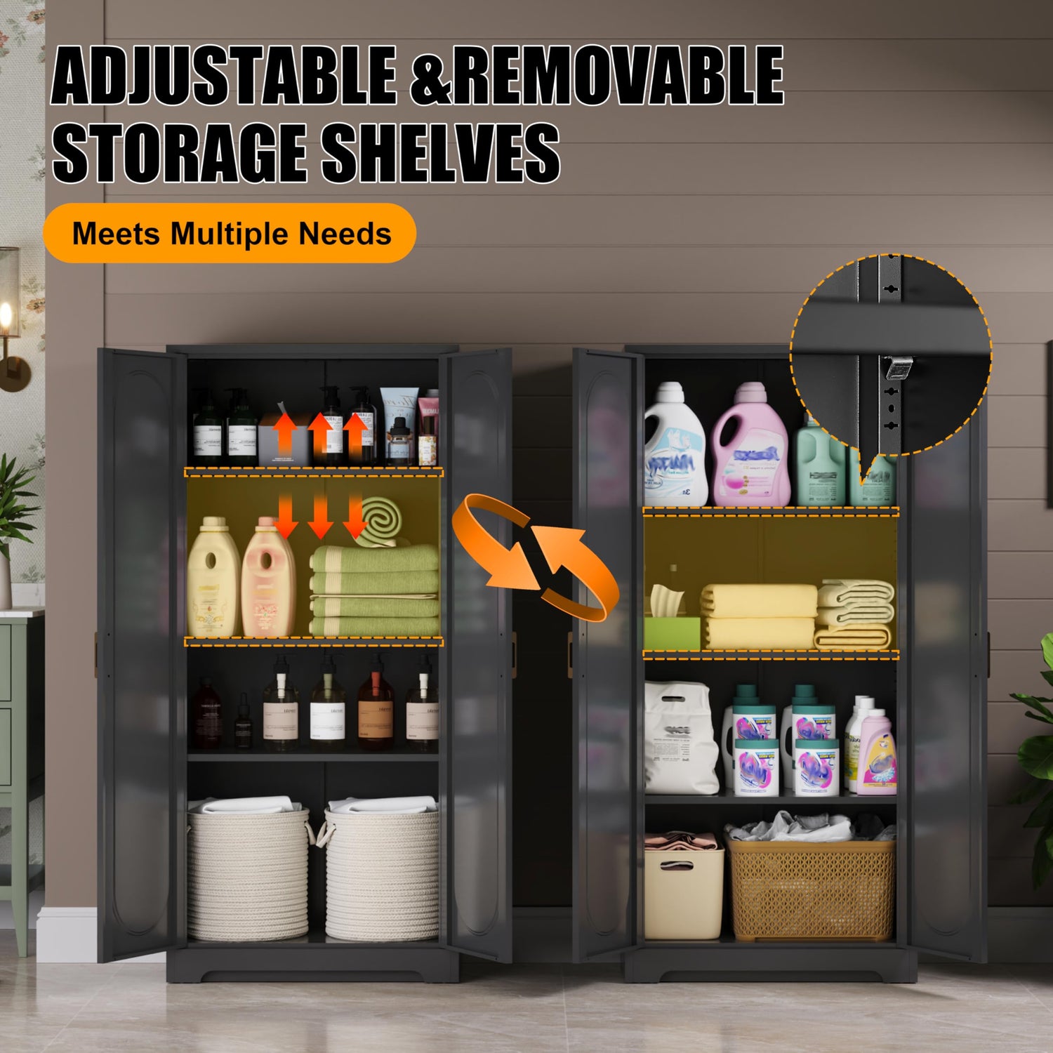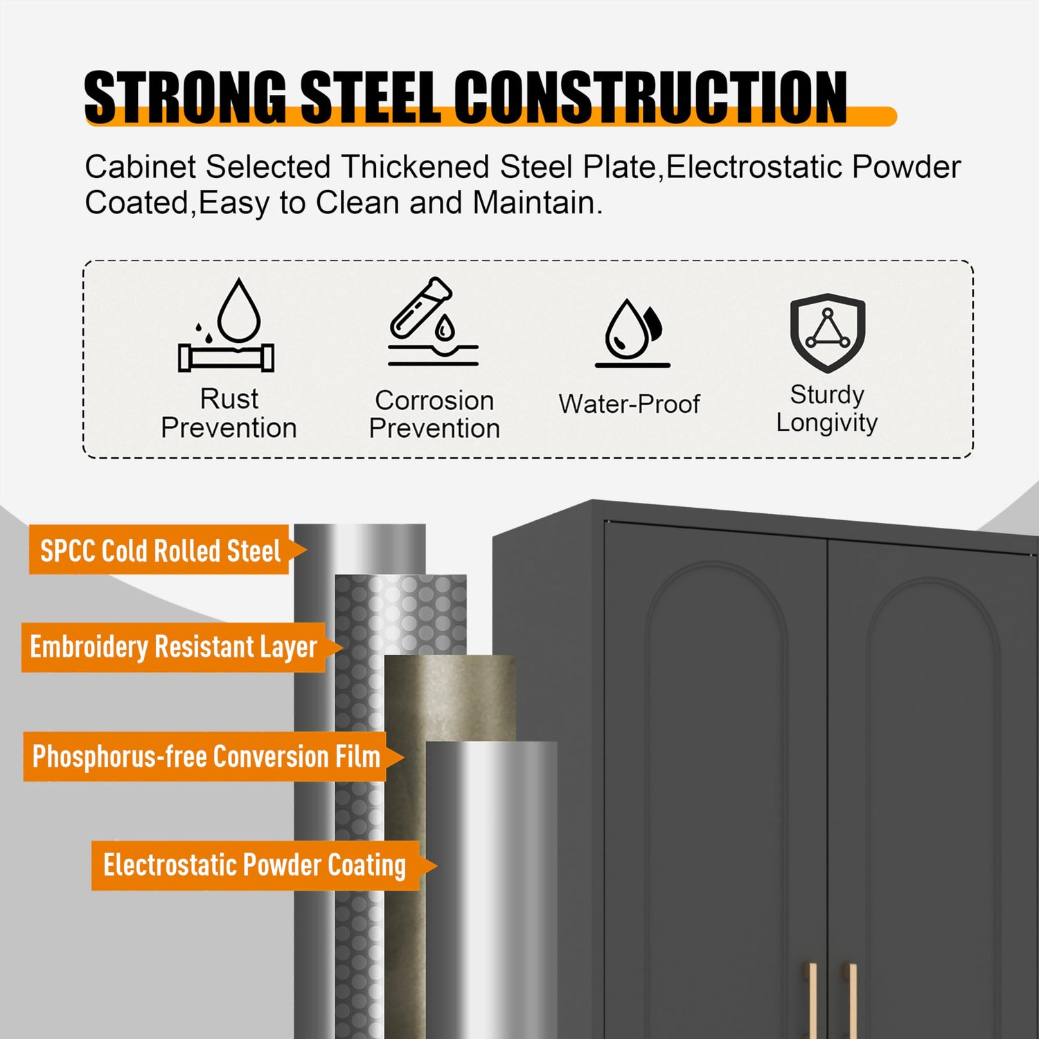 - Metal Material: The tall kitchen cabinet is made of cold-rolled steel plate, with a powder coating process to prevent cracking and rusting, increasing the safety and stability of the product. The black metal cabinets come with an anti-tip feature that prevents the cabinets from tilting and protects your family. Metal storage cabinets are sturdy, with easy to clean surfaces