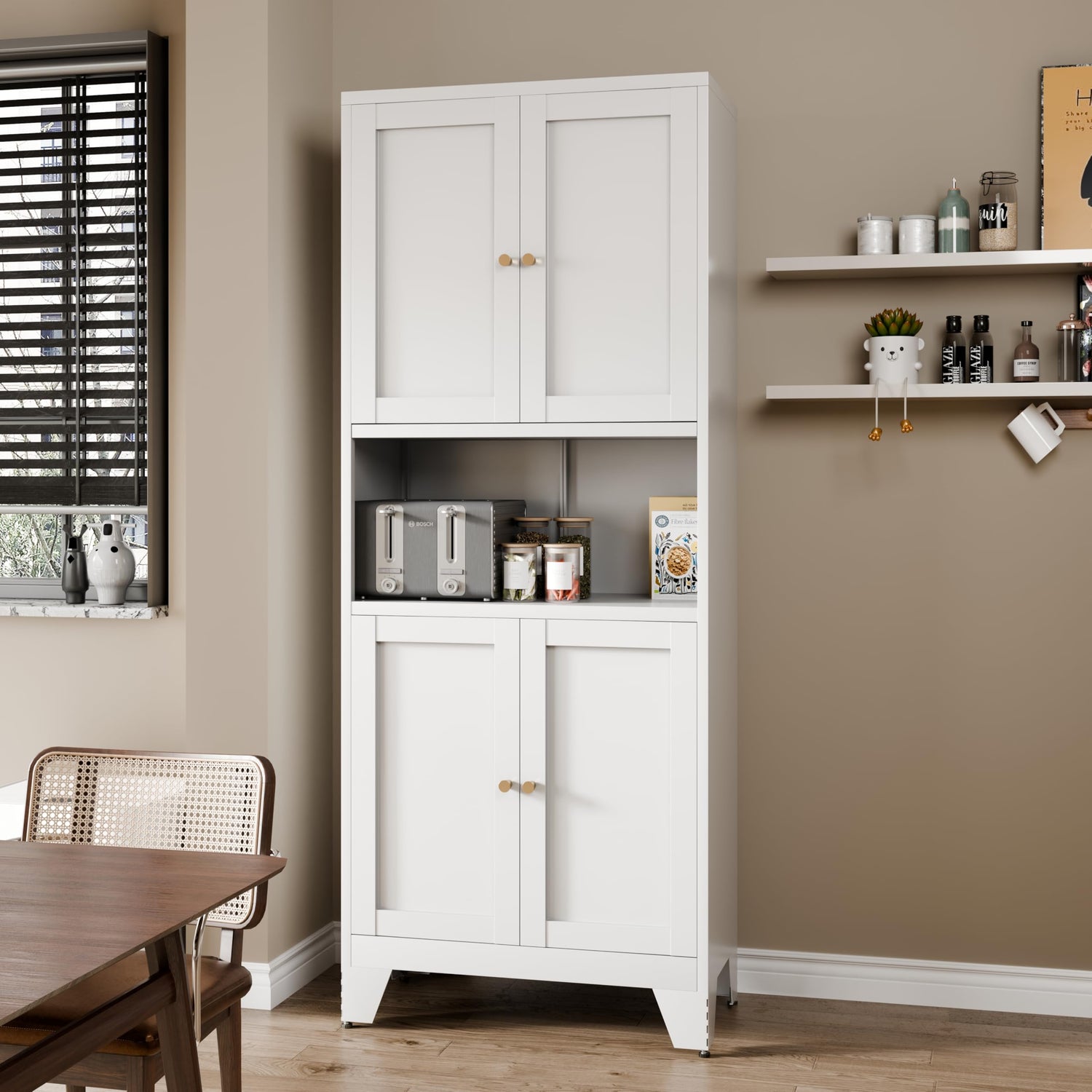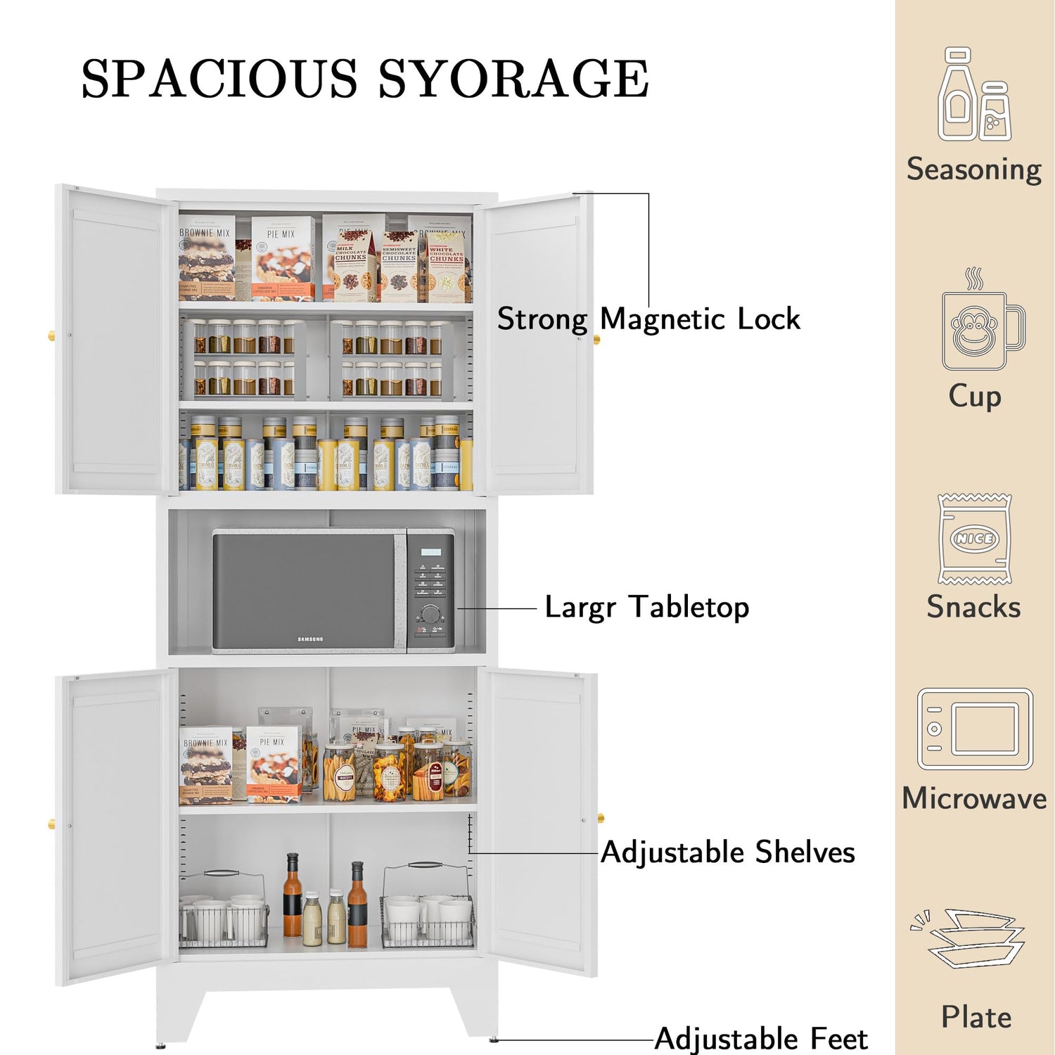 Boegica 69" Tall Modern Kitchen Pantry,Metal Storage Cabinet with Adjustable Shelves,Pantry Storage Cabinet with 6-Tier,Freestanding Cupboard for Kitchen,Dining Room,Living Room,Bathroom,White