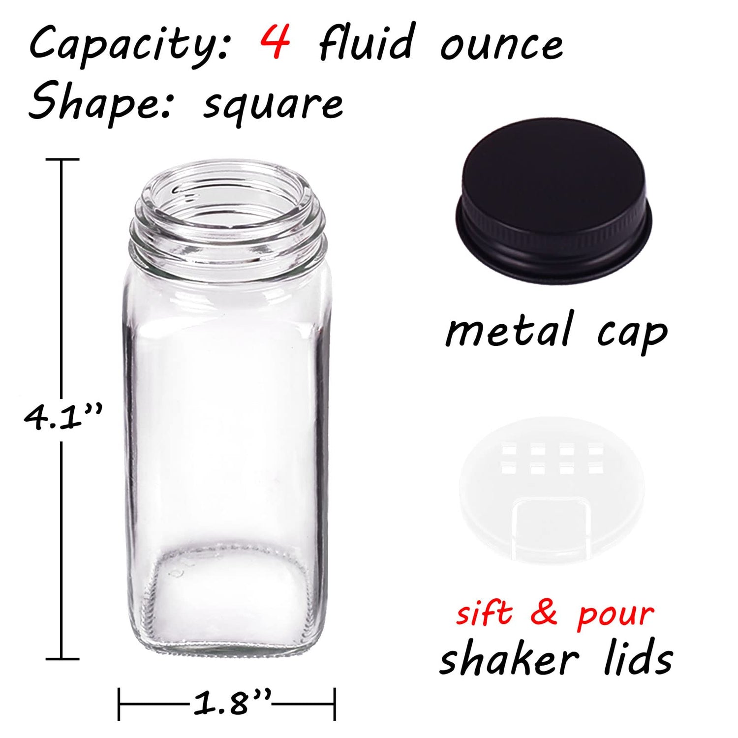 • CONVENIENT DESIGN: The shaker lids come in 2 different designs, ones with small holes for powder spices and ones with large holes for grains and herbs. The metal lids can keep spices fresh longer. The funnel makes it easier to add new spices to your spice containers.