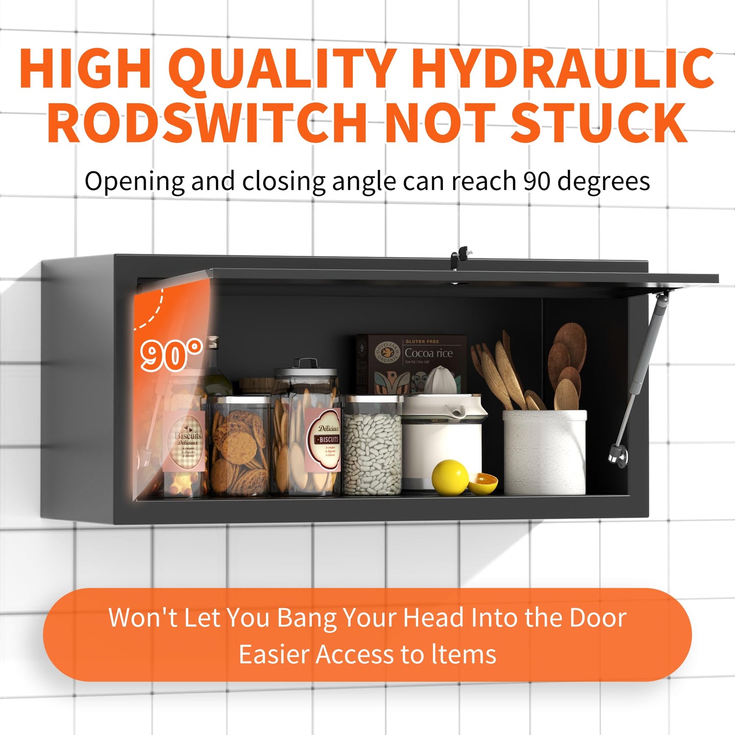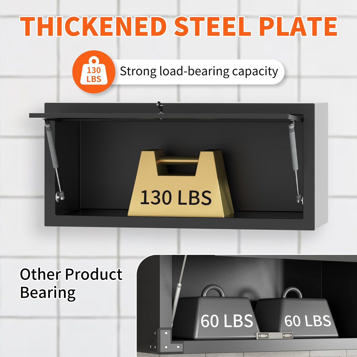 DARTIIA Metal Wall Cabinet with Up-flip Door,Garage Storage Cabinet,Wall-Mounted Storage Cabinet for Kitchen,Garage,Warehouse,Office,Black,Assembly Required