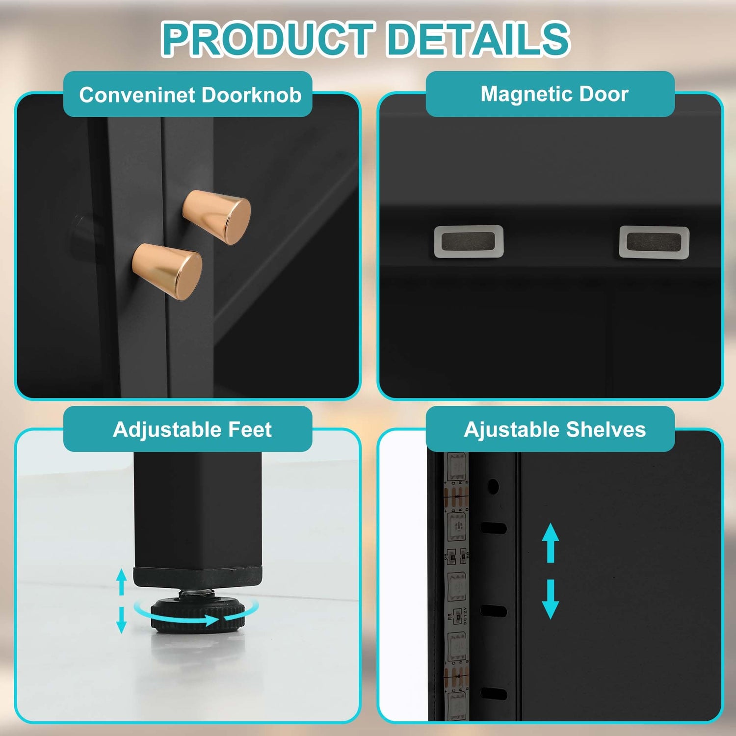 Desirable Life Display Cabinet with Glass Doors, Metal Storage Cabinet with 4 Adjustable Shelves, 5 Tier Curio Cabinet with LED Lights, 67” Tall Display Case for Collectibles, Black