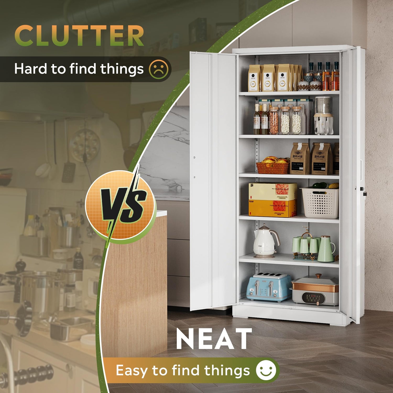- Installation and Service: Kitchen pantry storage cabinet needs to be assembled upon arrival, easy to understand instructions are included in the package. If you have any questions, please feel free to contact us, we will provide professional service.
