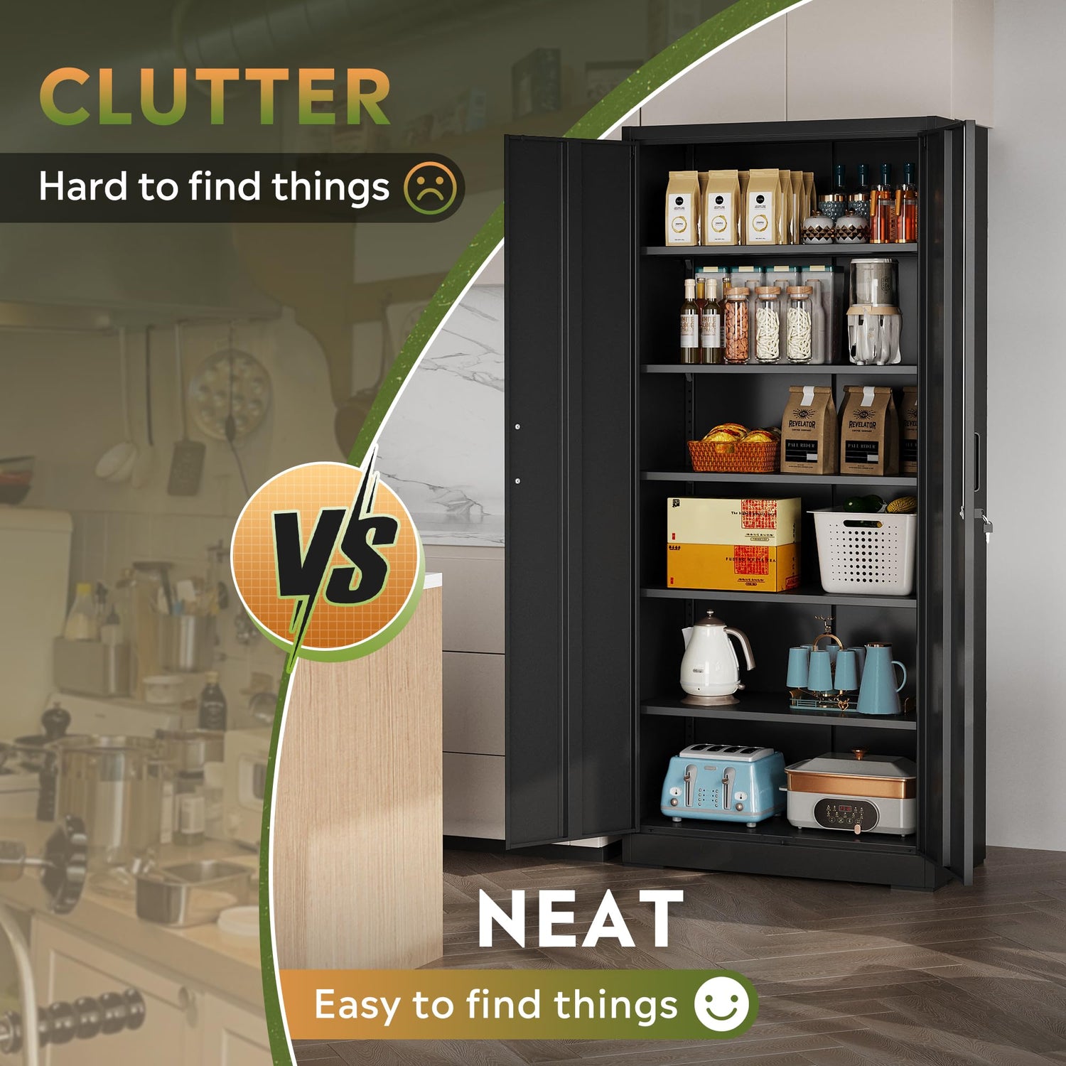 - Anti-Tipping Design: The tall storage cabinet is equipped with an anti-tipping design, which can be firmly fixed on the wall to prevent heavy objects from tipping forward, protecting you and your family's safety. Suitable for home office, laundry room, garage, kitchen, school, shop and utility room to store food, books, heavy tools and other items.