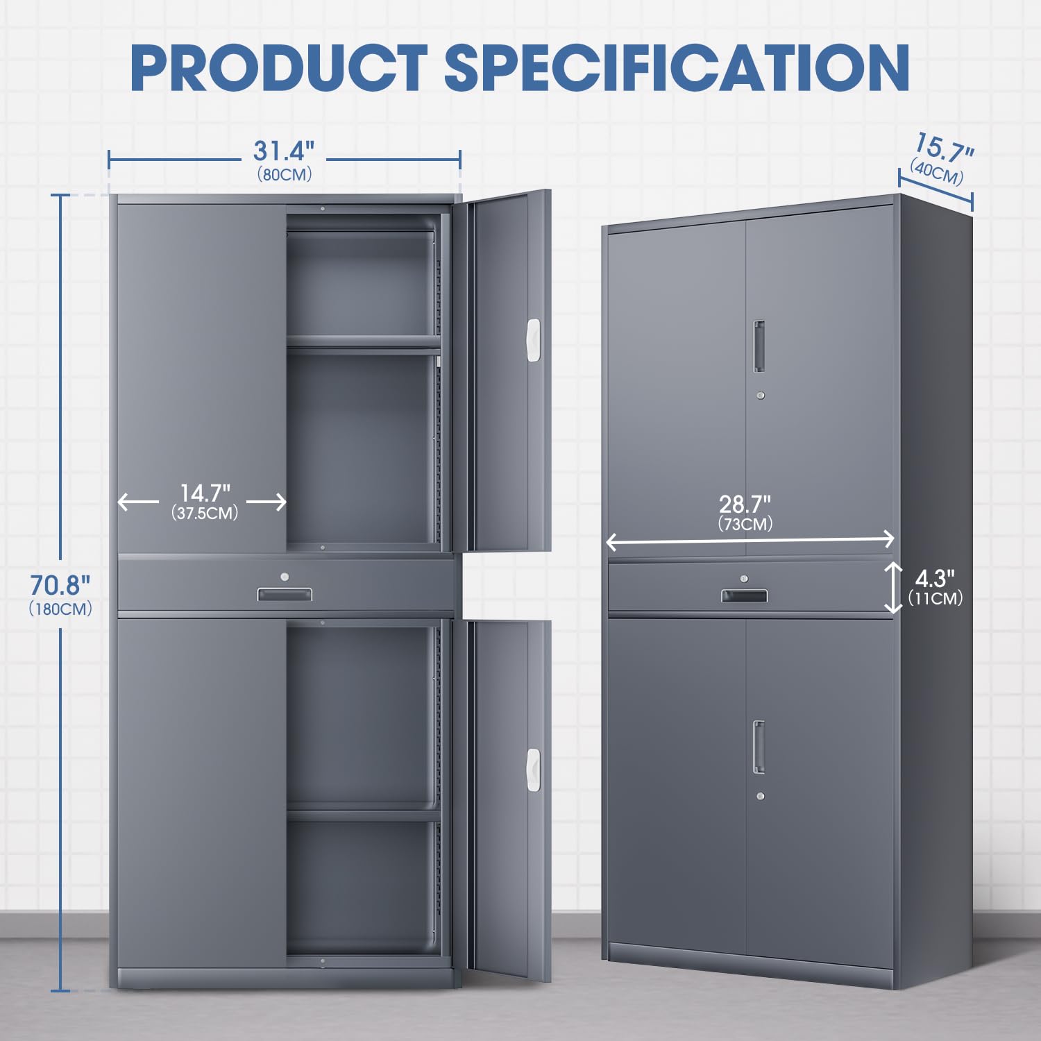 • HIGH SECURITY - Our metal locking cabinet feature a simple and efficient upgraded locking system, and the steel rods are thickened to provide higher security for your valuables and important items and file.