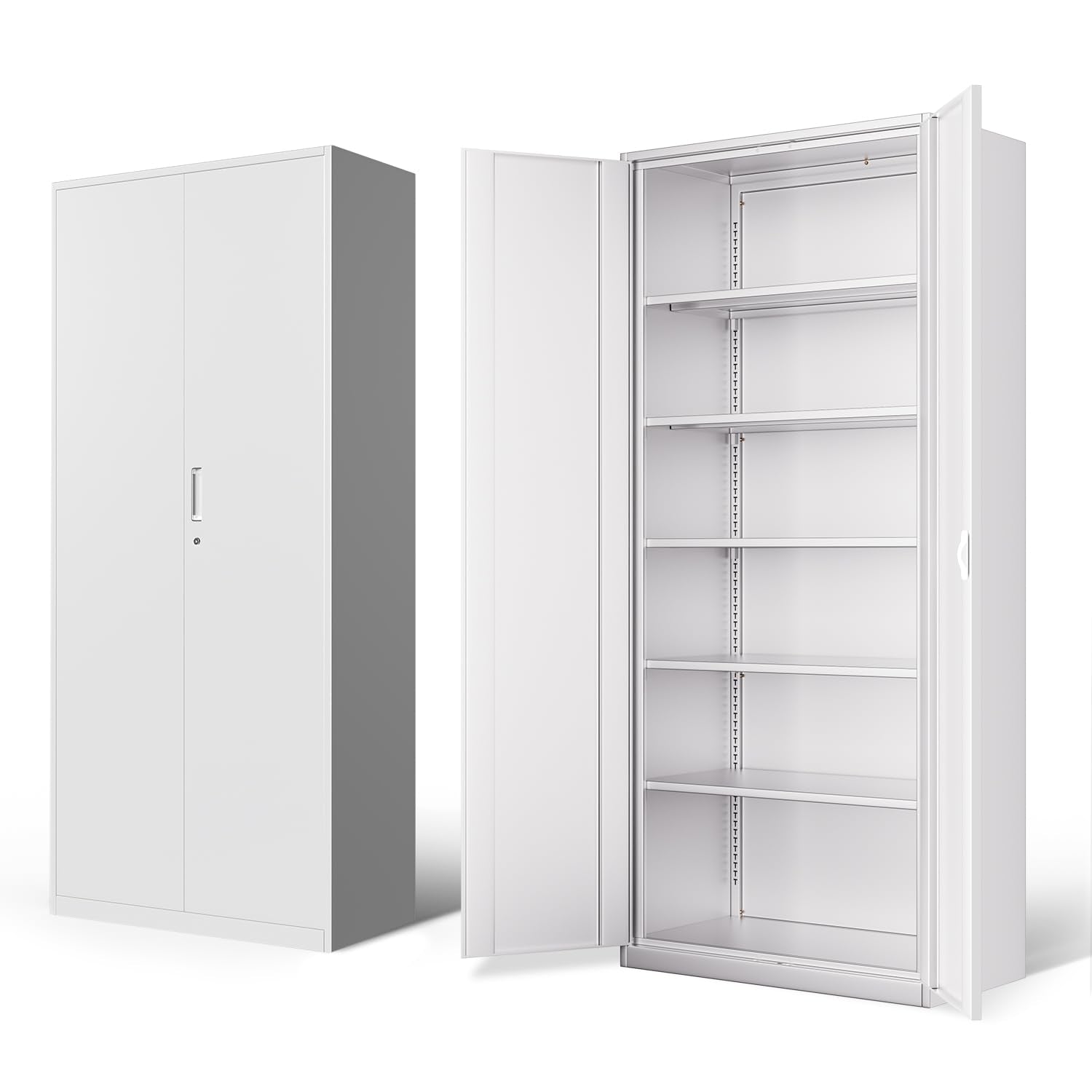 DNA MOTORING 71'' Metal Storage Cabinet, Locking Tool Cabinet with 5 Adjustable Shelves, Heavy Duty Metal Locker for Garage,Office,Home,Gym,White, TOOLS-00632-WH-WH-A