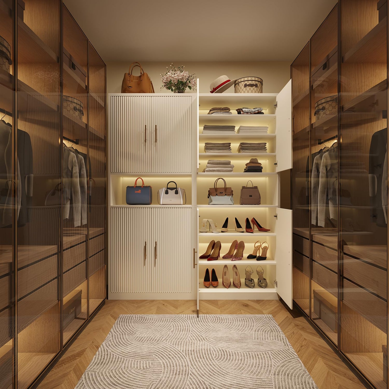 - Stylish Fluted Doors: The Epecoya 66" shoe cabinet features elegant fluted doors, adding a modern touch to your entryway or closet.