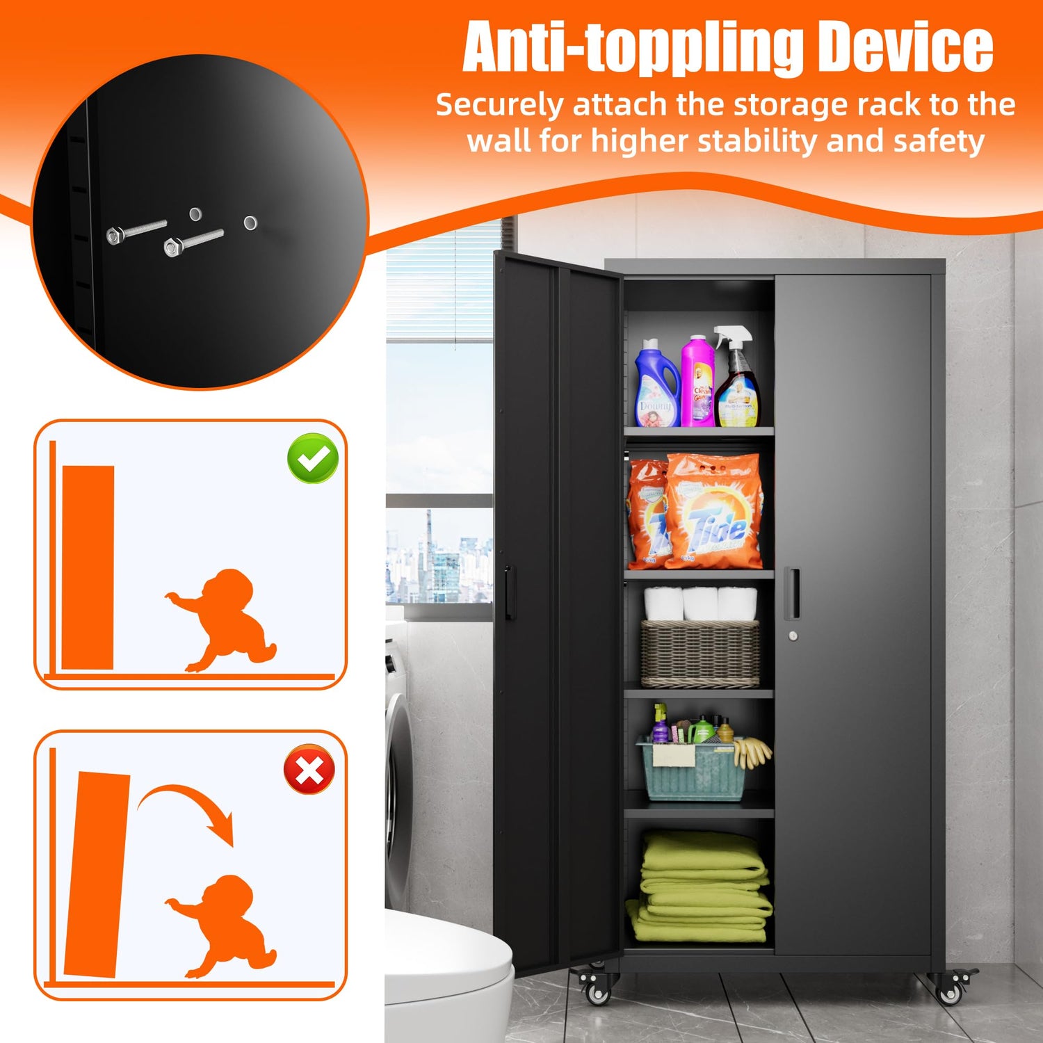- Your Cabinet, Your Way: Unmatched storage solution with optional wheels, move or stay put, with or without wheels, your choice(All four wheels have locking function). The height of the garage storage cabinet is 73" with wheels, 71" without wheels, and it suits for a variety of scenarios such as garage, home, office;