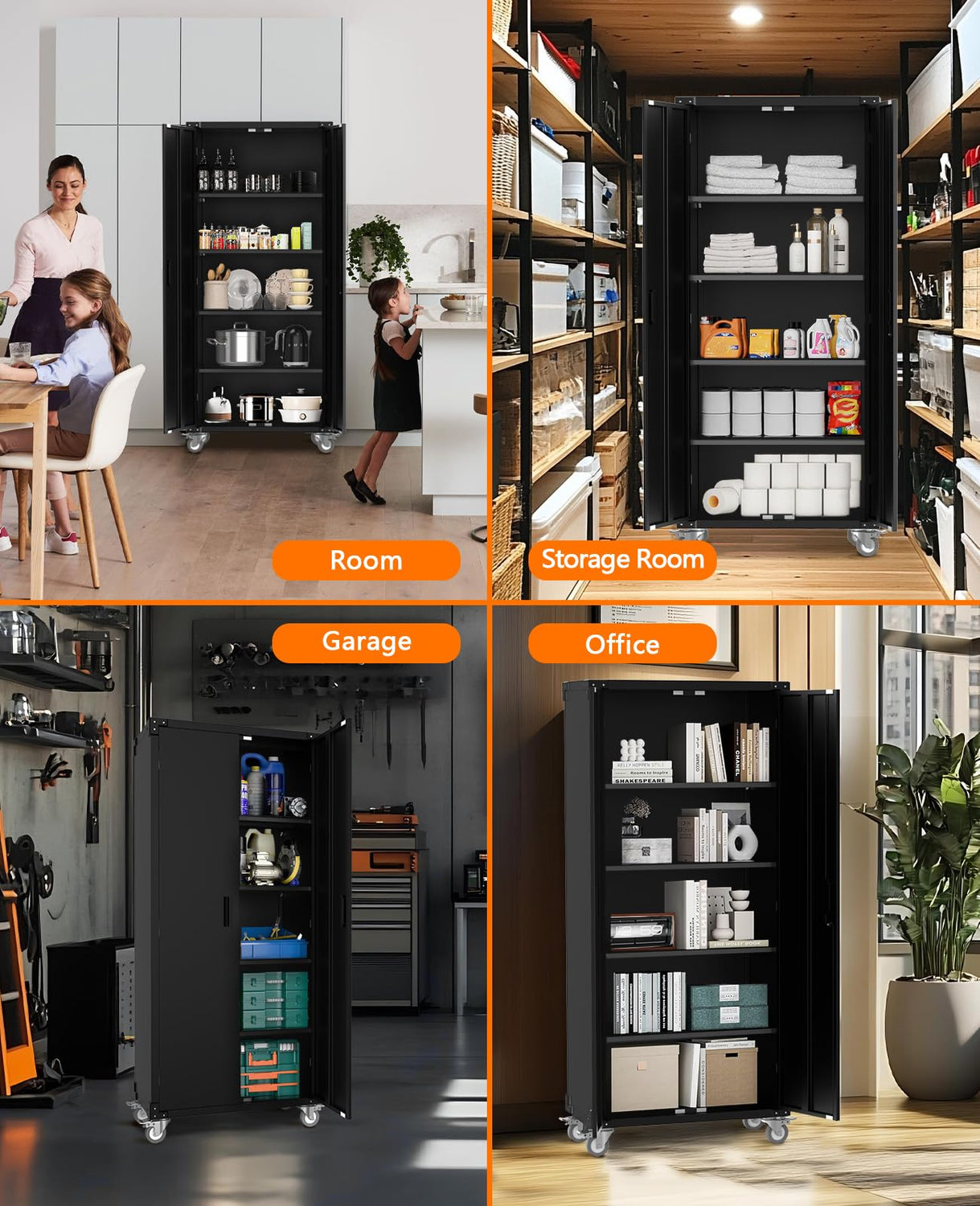 GarveeHome Metal Storage Cabinet 72" H with Wheels, Steel Tool Cabinet with Lock and 4 Adjustable Shelves and Lockable Rolling,Storage Organization for Home,Garage,Office