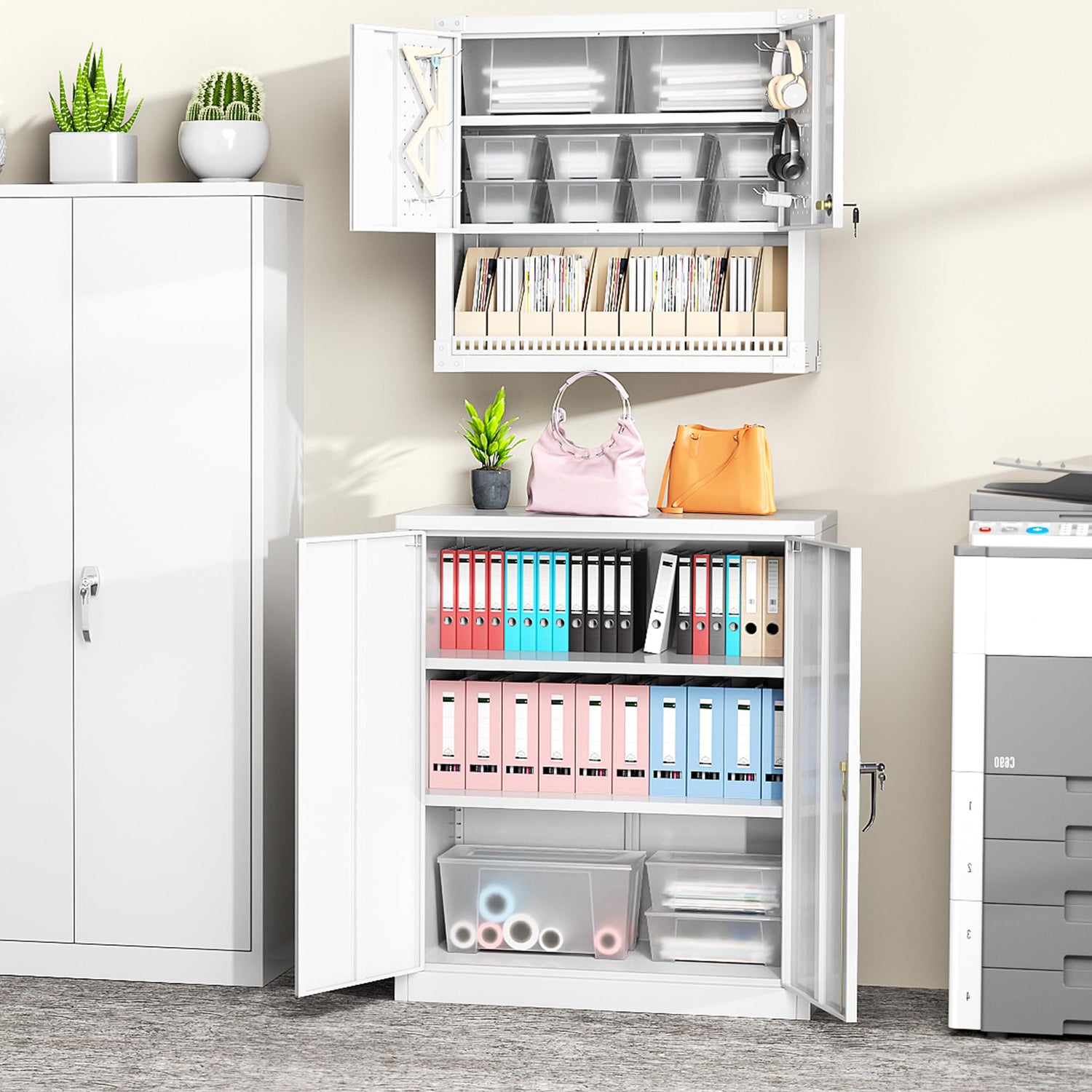 Greenvelly Metal Storage Cabinet with Lock,36" White Lockable Storage Cabinet with Doors and Adjustable Shelves, Locking File Cabinet for Garage,Home,School,Pantry