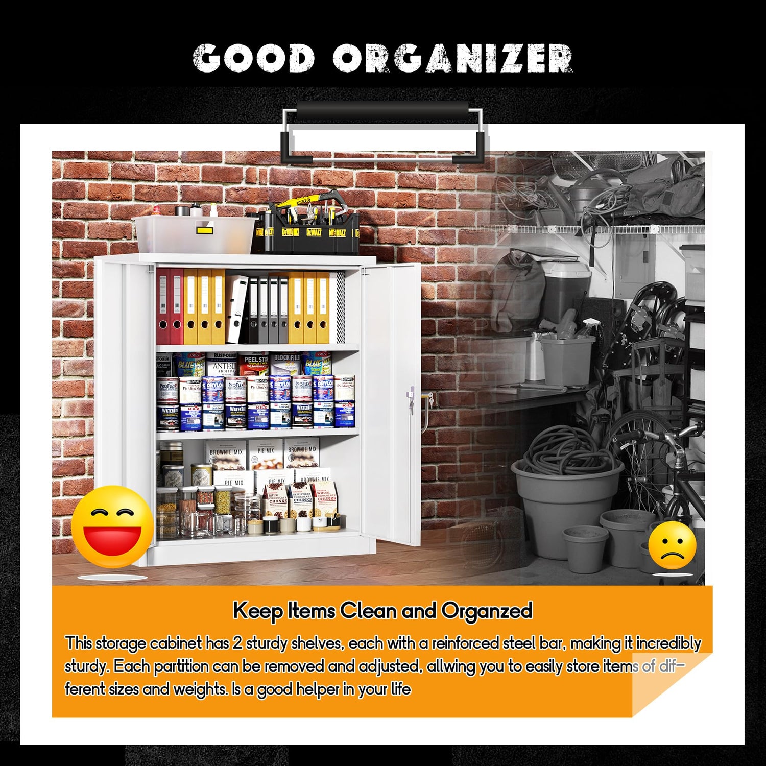 - 【Large Capacity&Practical Design】Greenvelly 32"W*36"H metal cabinet with doors and 2 adjustable shelves, boasts a simple yet elegant design that easily complements a variety of home styles, perfectly aligning your storage needs with your aesthetic sensibilities. Whether it’s tall bottles or short jars, they can find just the right place in this thoughtfully designed space, achieving a harmonious blend of beauty and practicality.