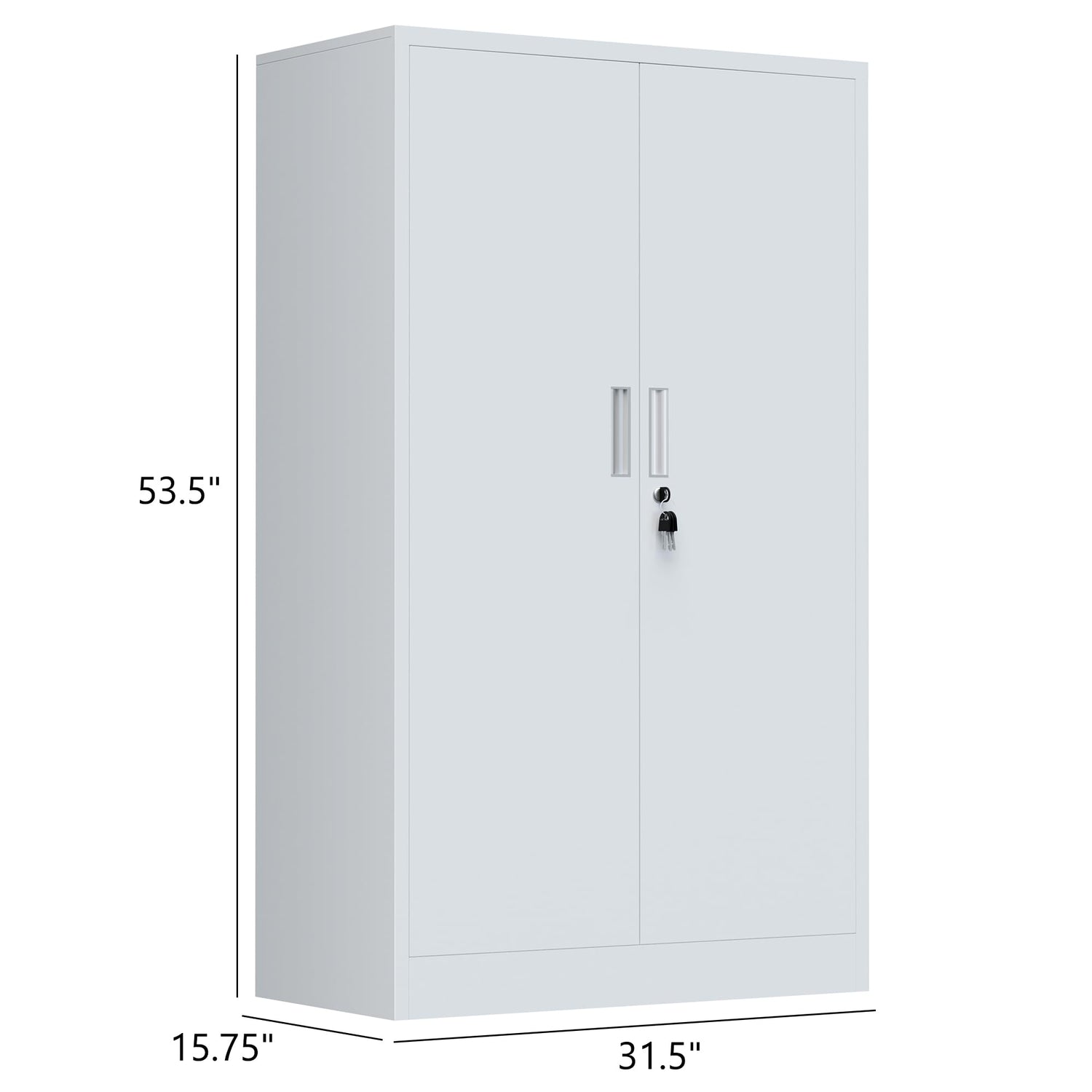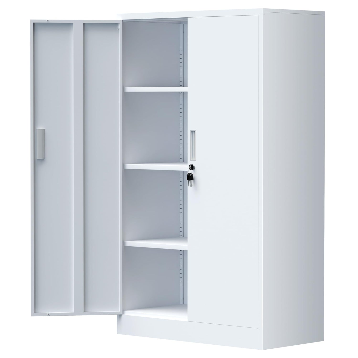 iJINGUR Metal Storage Cabinet with Locking Doors and Adjustable Shelves, 53.5-Inch Tall Lockable Storage Cabinets for Home Office Garage Kitchen Pantry (White)
