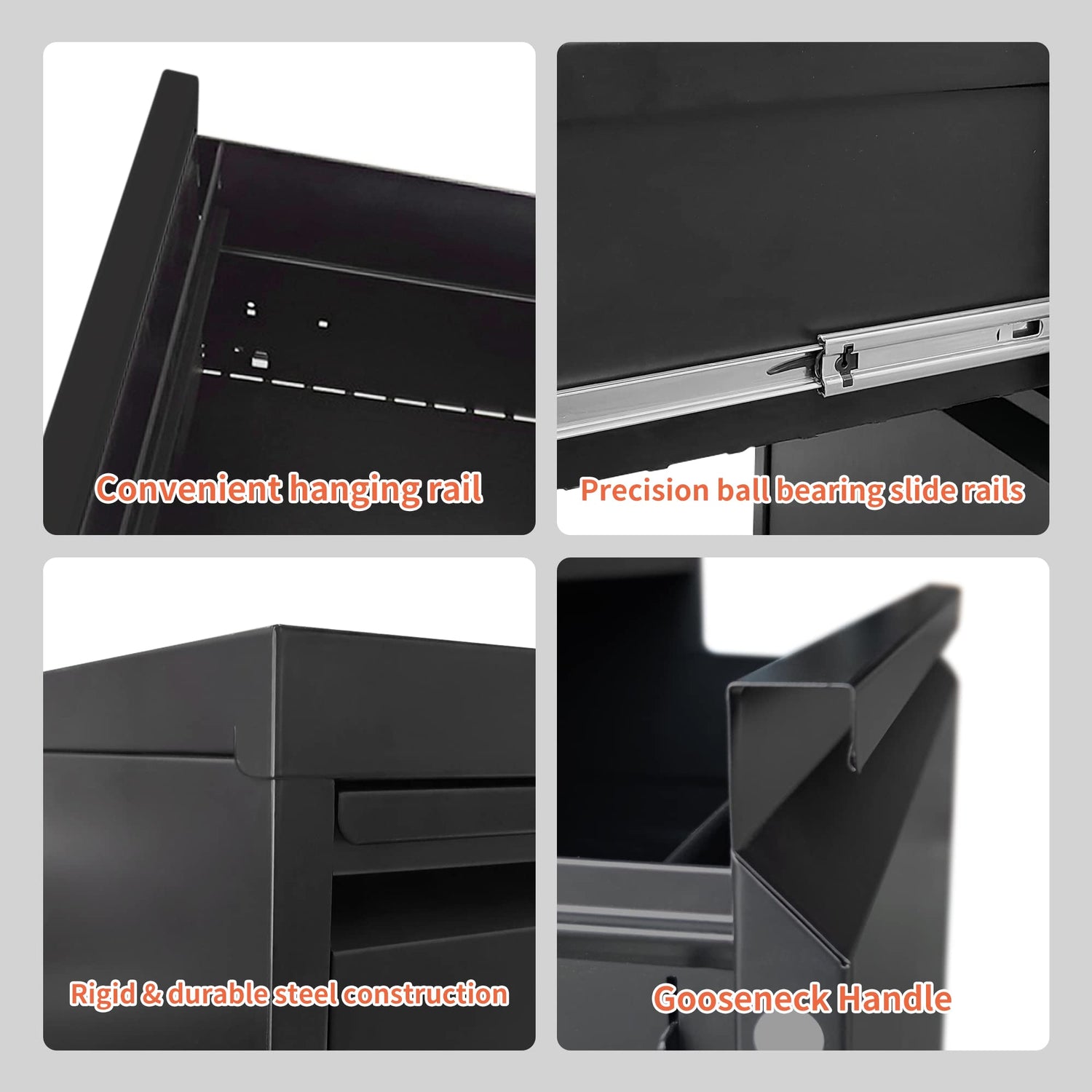 - 【Strong & Durable Constructure】:Made from cold-rolled steel sheet,the filing cabinet is rugged and not easily deformed, ensuring strong load capacity and great stability,each drawer of this vertical file cabinet can hold up to 55 pounds,you can sit a printer on the top of the metal cabinet without worry