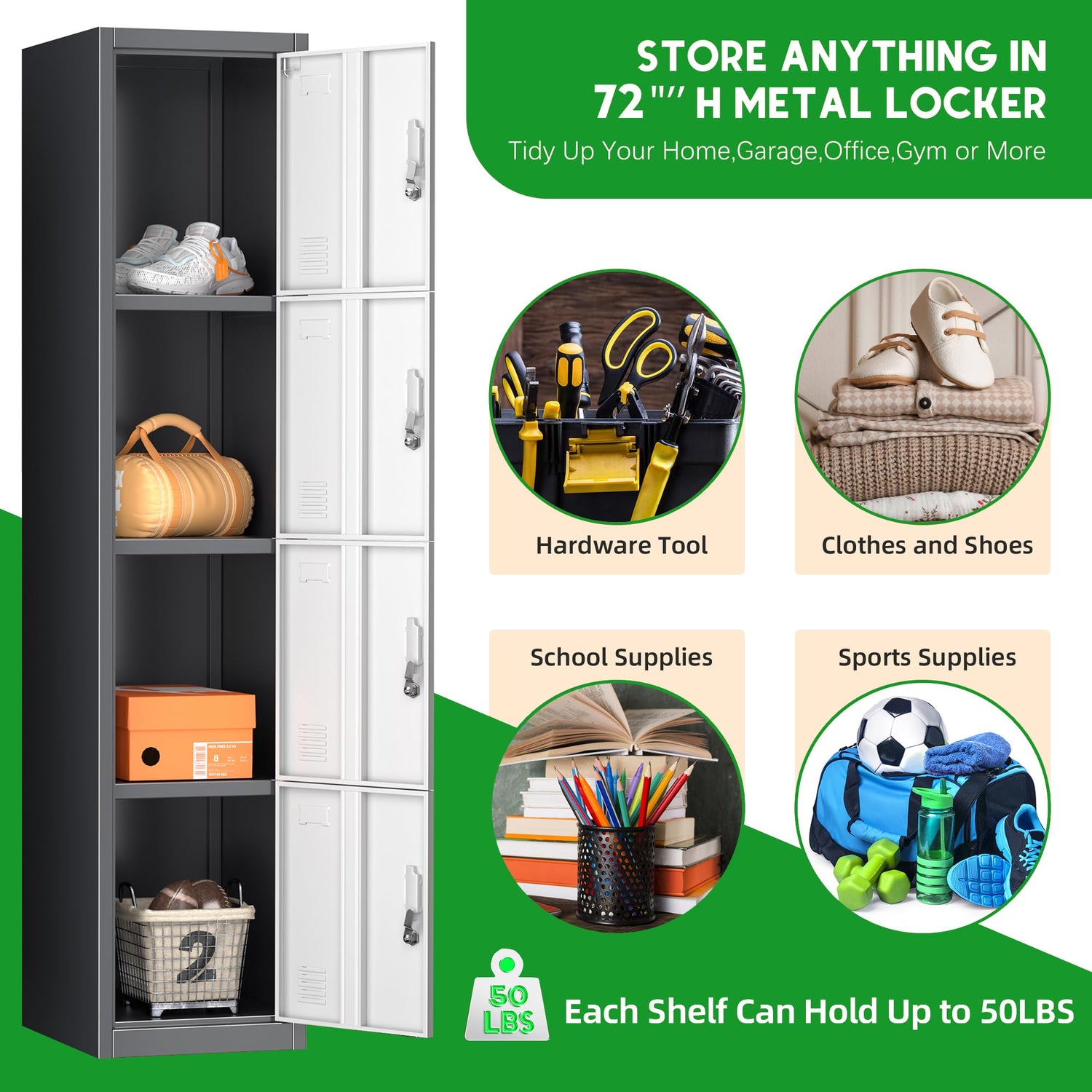 INTERGREAT Metal Locker for Employees with 4 Doors,(72") Steel Locker Storage Cabinet with 4 Tiers,Tall Office Storage Lockers for Home Office,School,Gym (Grey White)