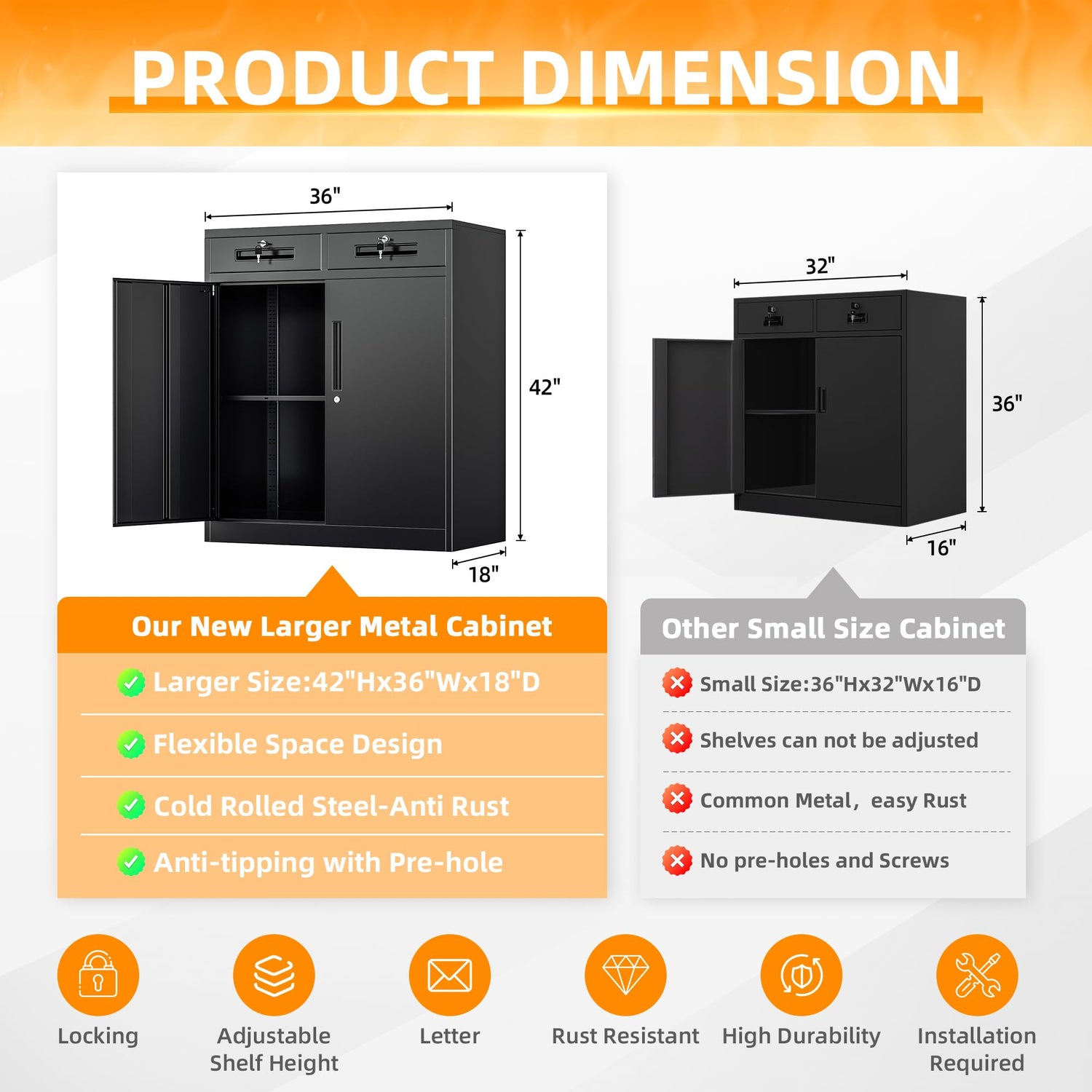 - β [π¨π£ππ₯ππππ πππ₯ππ π¦πππ] -- Intergreat 42 X 36 X 18 inch oversized metal storage cabinets were fully upgraded in 2023. In addition to expanding capacity, the production process of black storage cabinets with drawers has also been comprehensively improved to ensure safe storage of more and heavier tools in areas such as garages, classrooms, living rooms, tool rooms, and car repair shops.