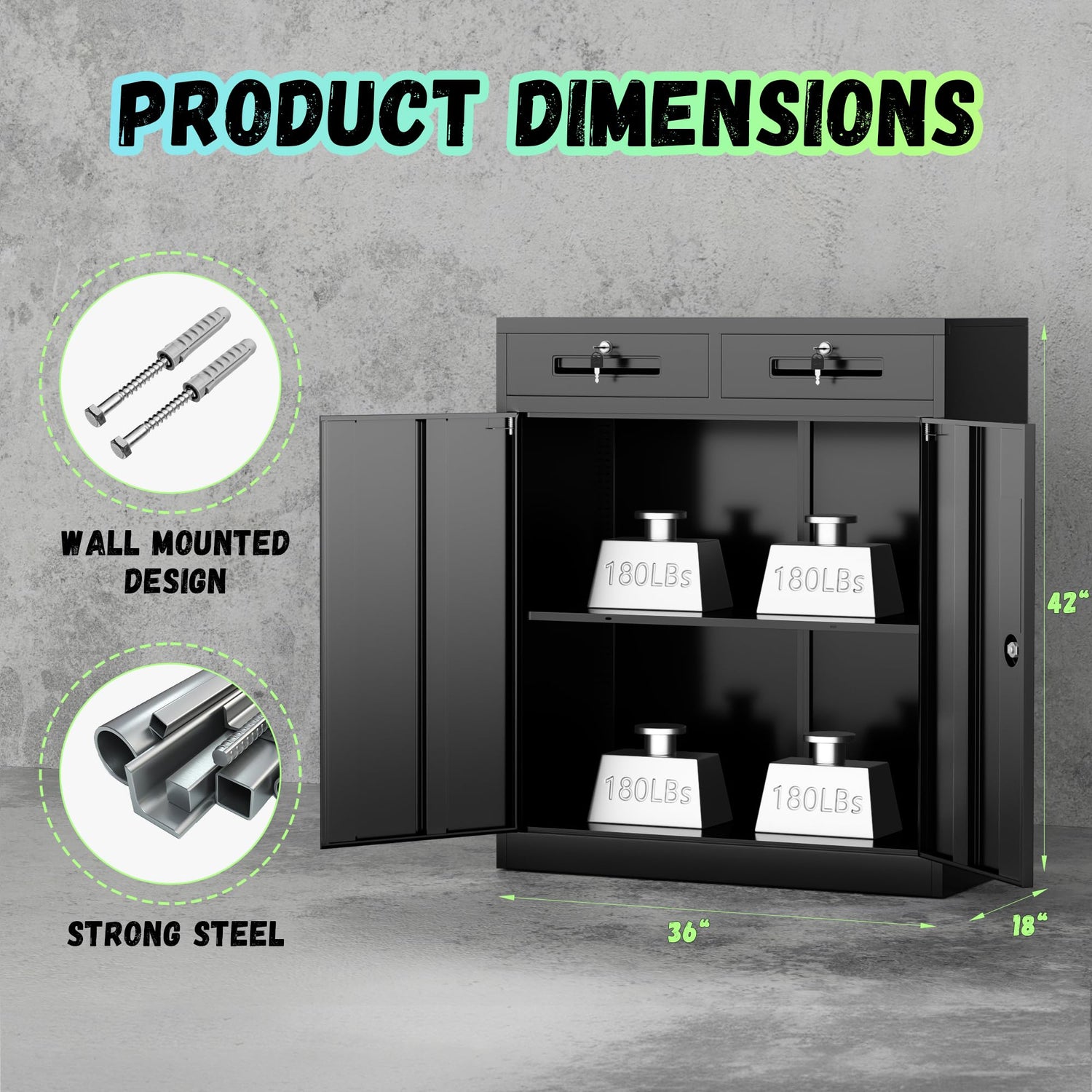 - 【Durable, high-quality steel】Intergreat lockable garage storage cabinet is made of high-quality steel or other strong materials, which has high strength and stability. Each layer can withstand 360lbs, which is not easy to deform or damage, ensuring long-term use.