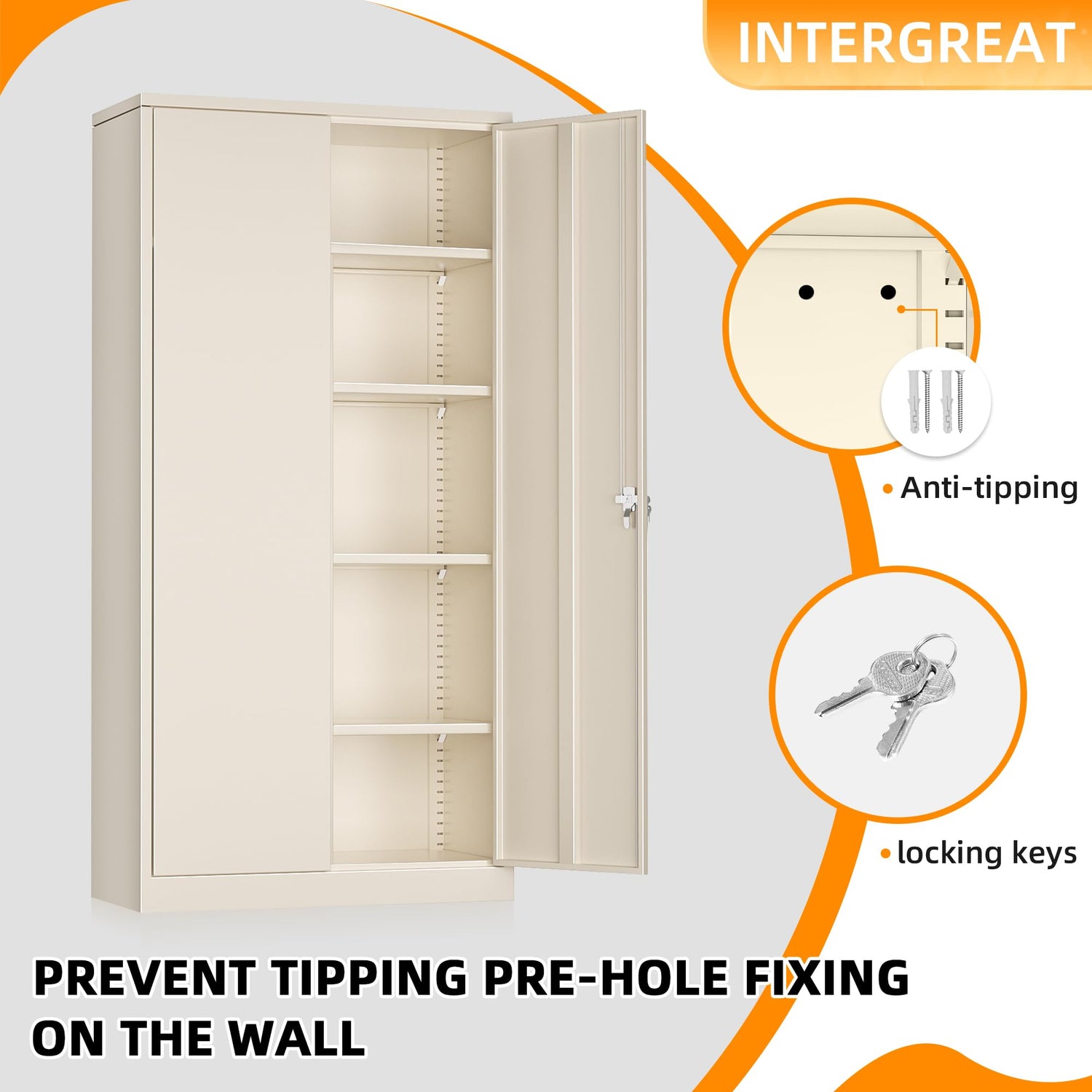 • 【Upgraded Humanized Design】INTERGREAT metal storage cabinet with locking doors compared with the cabinets on the market, we have upgraded the design, which is more practical. The storage cabinet lockable optimizes the storage space, and 4 shelves provide greater flexibility to meet your needs. Each door has a rubber cushion to reduce the noise when closing.