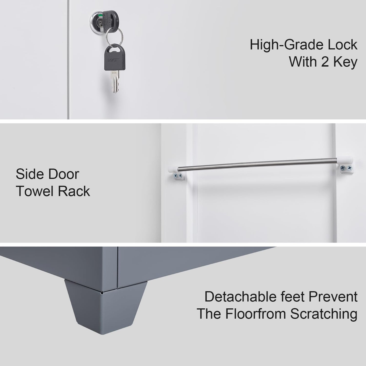 - 【MULTI-PURPOSE】The broom closet cabinet can store different items such as mops, brooms, fishing rods, towels, clothes, documents, etc. and can be used in offices, storage rooms, garages, homes, warehouses, laundries, basements, or anywhere you need a secure storage space.