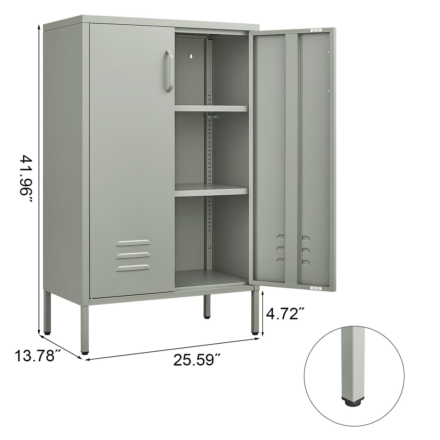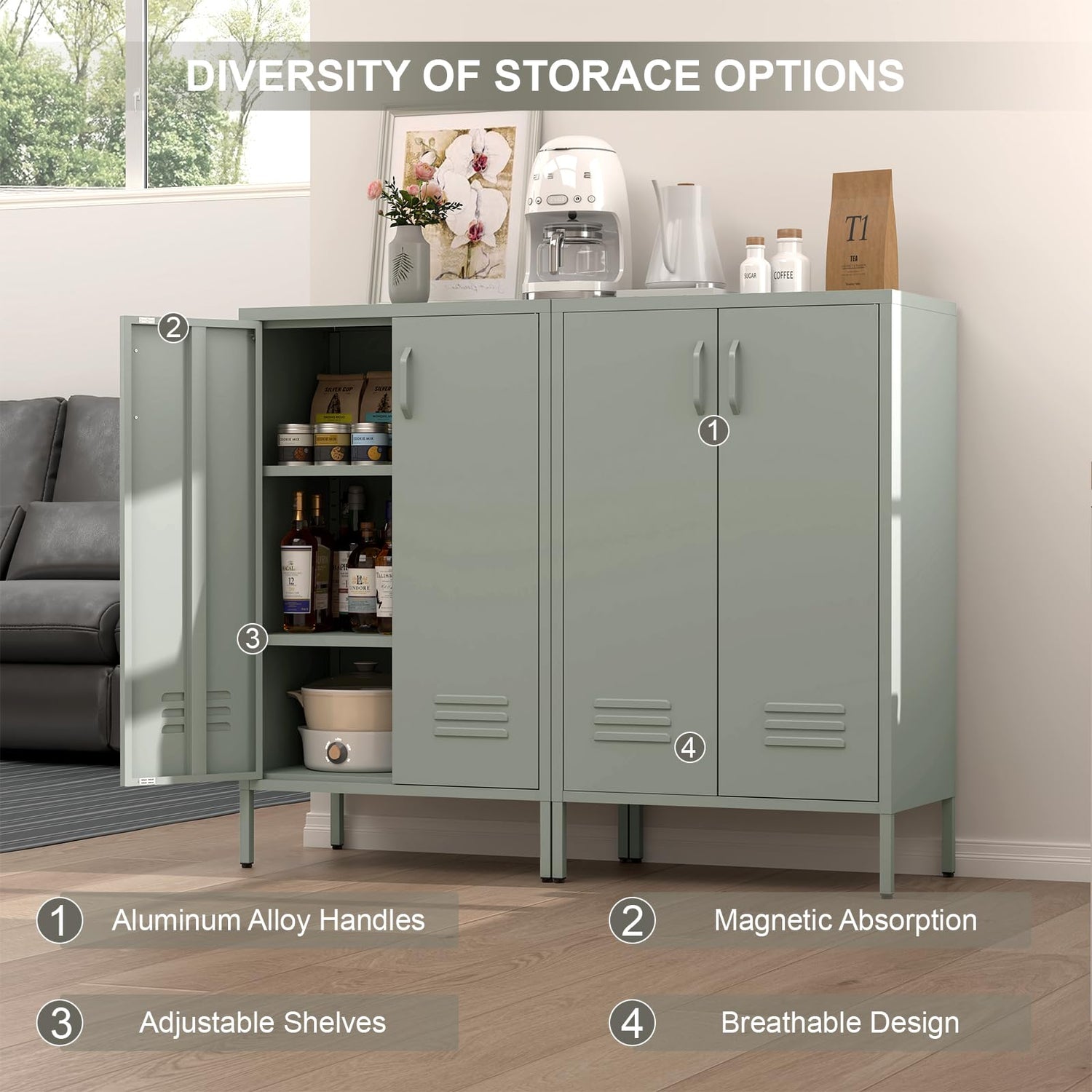 - ใ๐๐ง๐ข๐ช๐ฎ๐ ๐๐๐ฌ๐ข๐ ๐ง๐ฌใThis metal storage cabinets is designed with air vent holes for proper air ventilation,adjustable non-slip feet to adapting to uneven floor and magnets closures on the top of the doors to make sure the doors can be closed tightly.