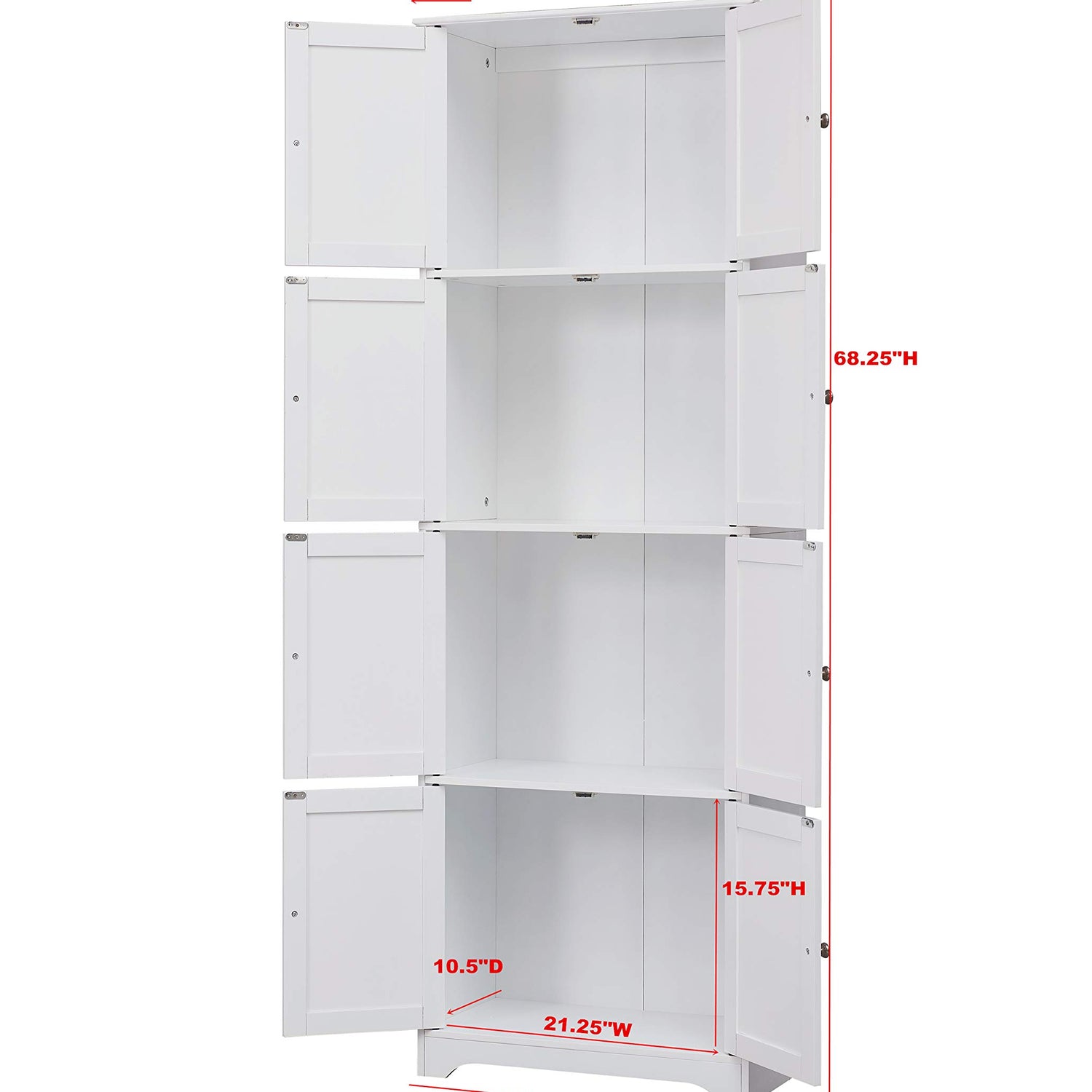 Kings Brand Furniture Lyons 4-Tier 68" Kitchen Pantry Storage Cabinet with 8 Doors, White, 23" W x 11.875" D x 68.25" H