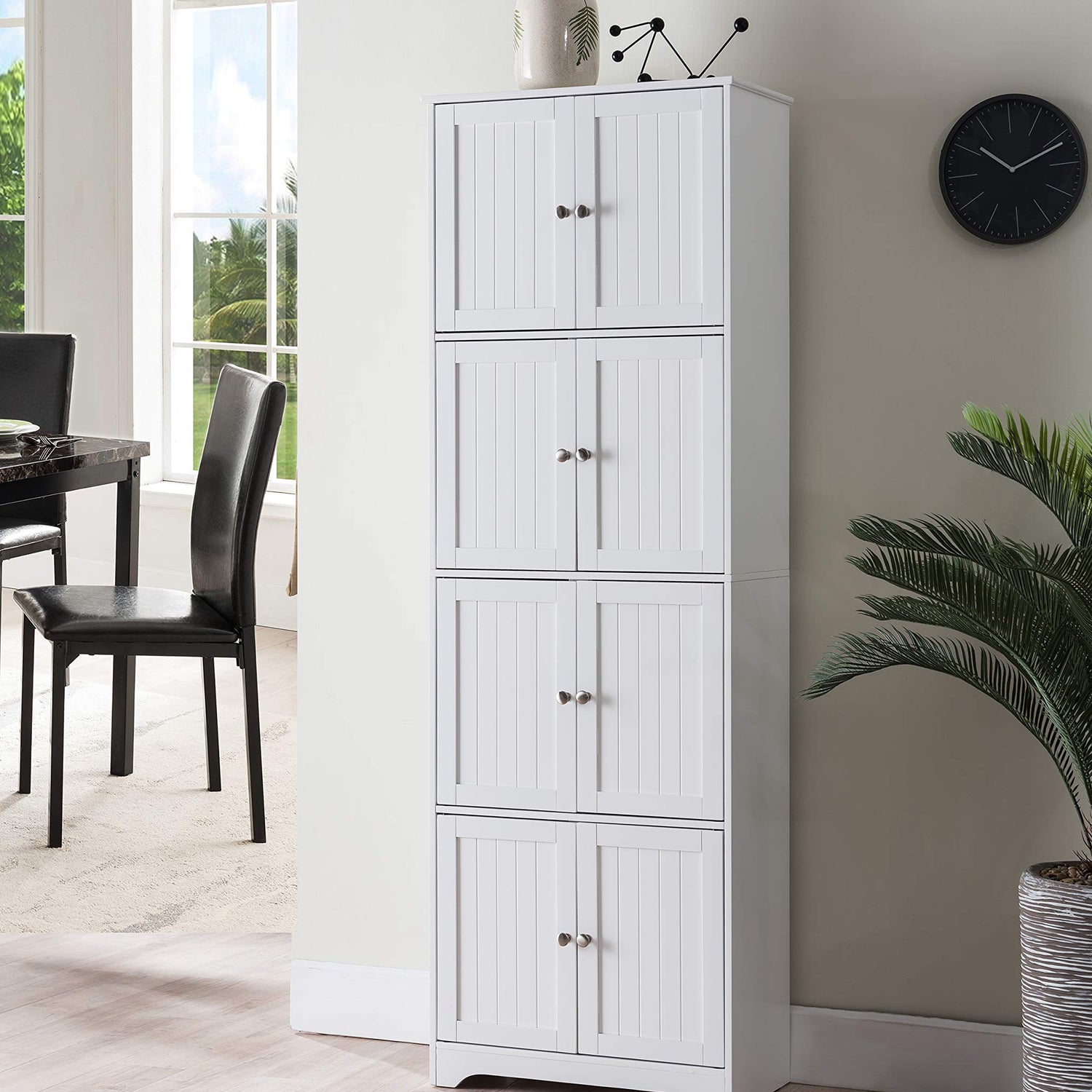 - Kings Brand Furniture - Lyons 4-Tier 68" Kitchen Pantry Storage Cabinet with 8 Doors, White