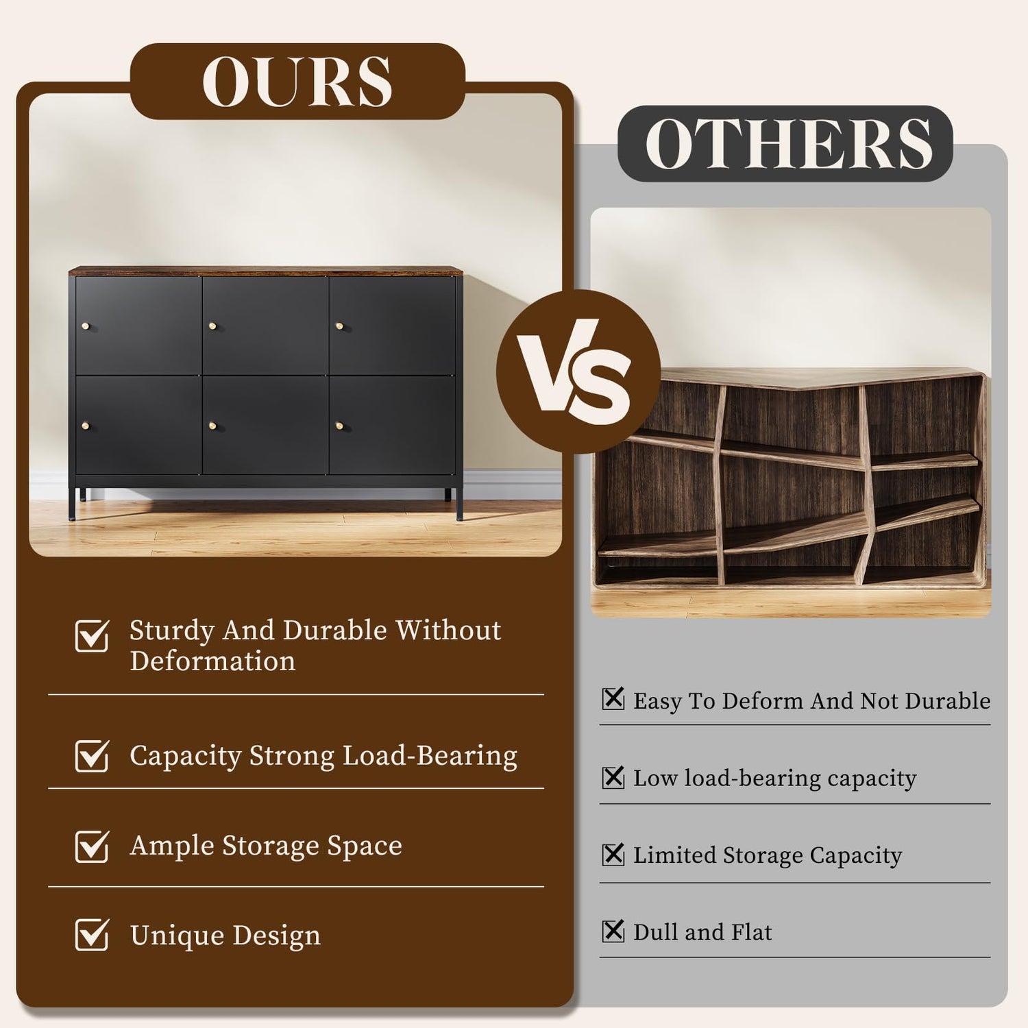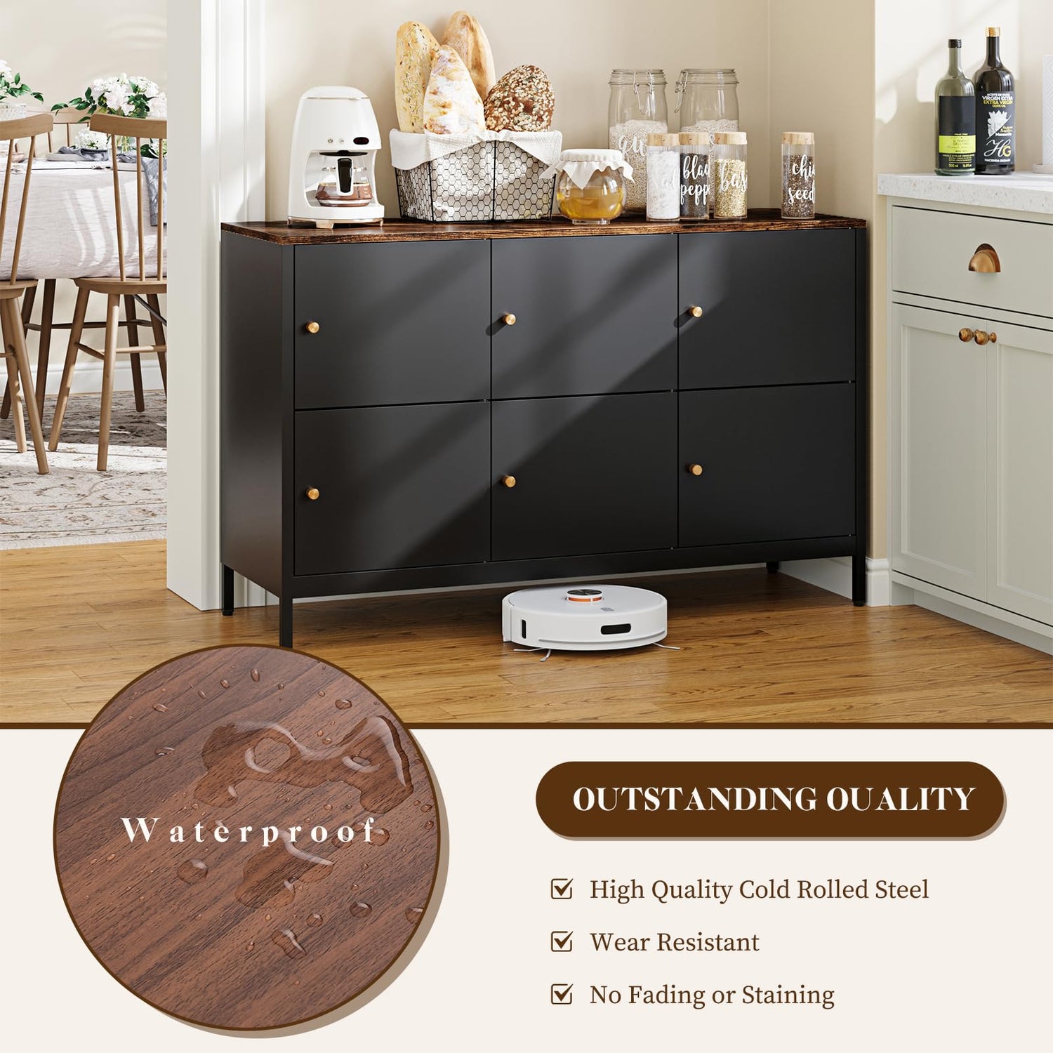 Letaya 6 Door Metal Storage Cabinet with Adjustable Shelf,Black Metal Locker Accent Storage Cabinet for Office,Music Studio,Entryway and Hallway