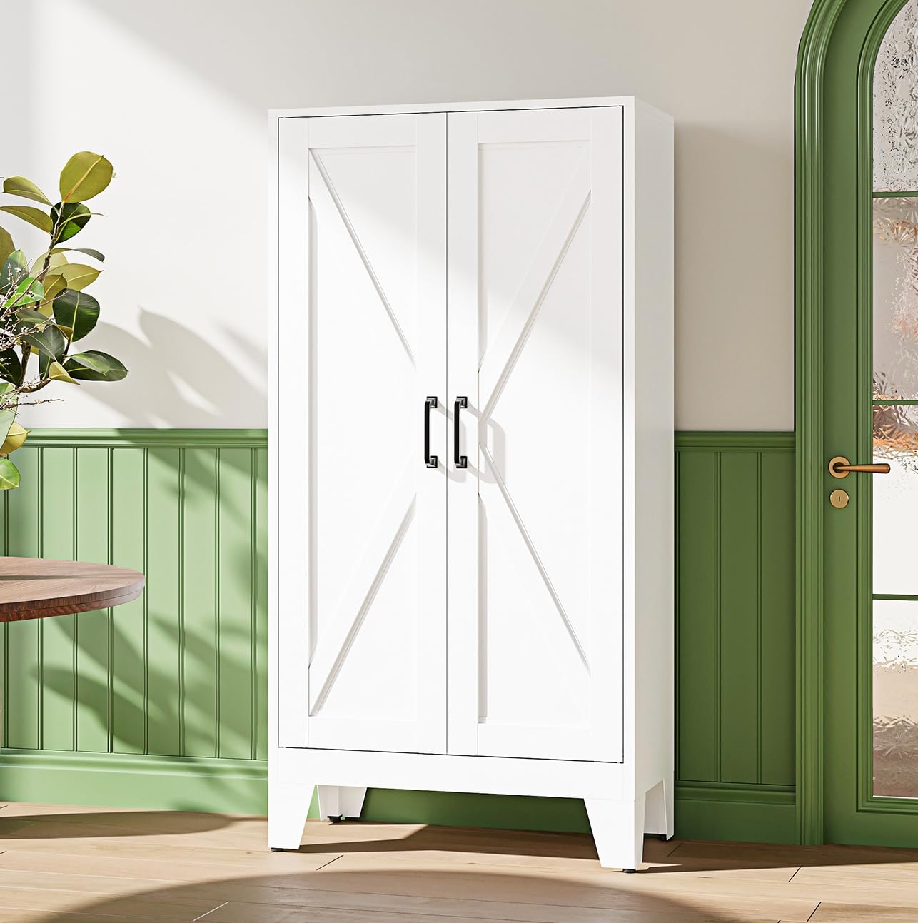 - 【Farmhouse Cabinet】: Enhance your kitchen or pantry with our rustic barn-style door cabinet. This piece adds timeless American charm and a cozy farmhouse vibe, perfect for country living enthusiasts. Its versatile design complements various decor styles effortlessly
