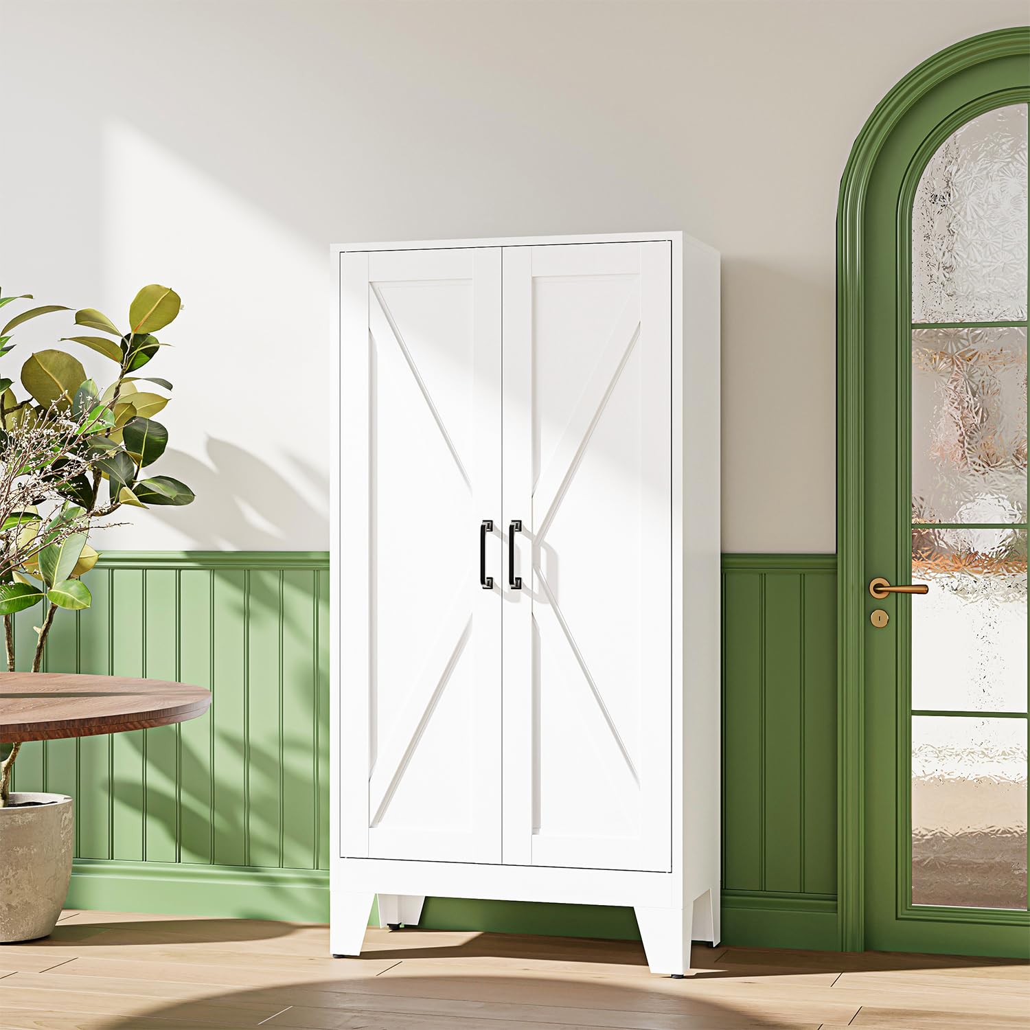 - 【Versatile Design】: This tall cabinet with doors and shelves is perfect for a variety of settings, including kitchens, restaurants, dining rooms, bathrooms, studies, offices, laundry rooms, and entryways, making it a flexible storage solution for both home and office use