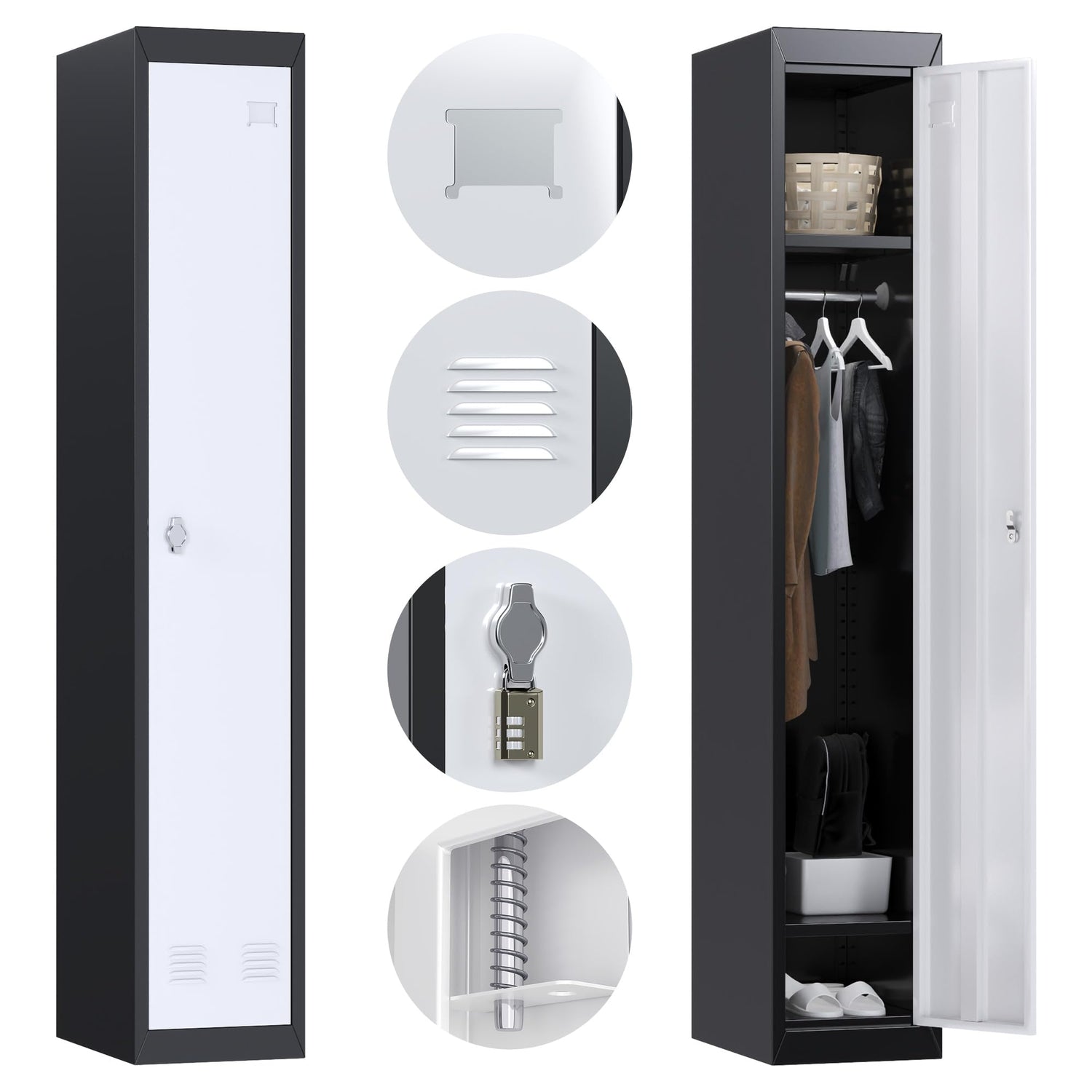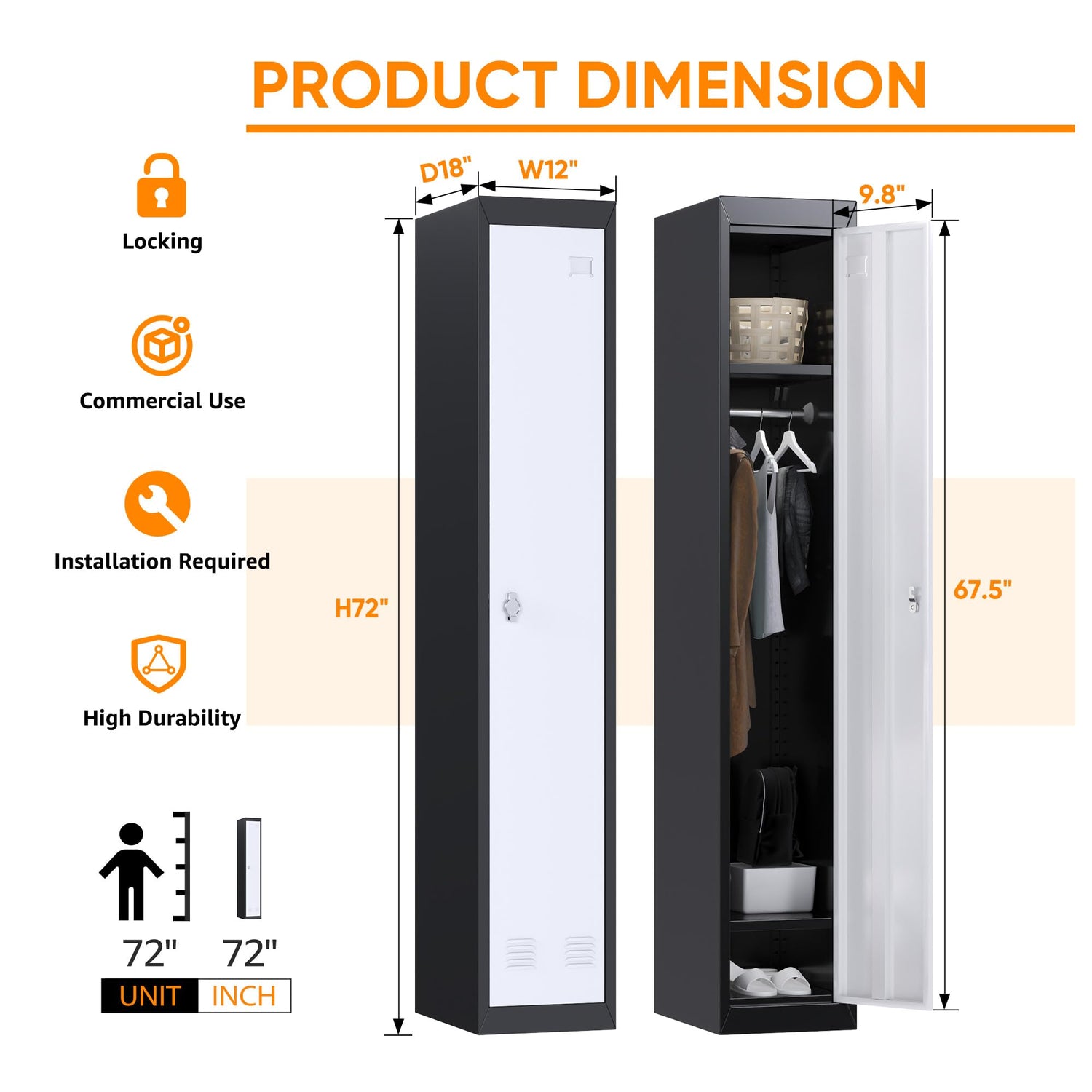 Details: Metal Lockers for Employees, 72" H Steel Storage Cabinet with 1 Door Lockable for Office Staff,School,Gym,Home