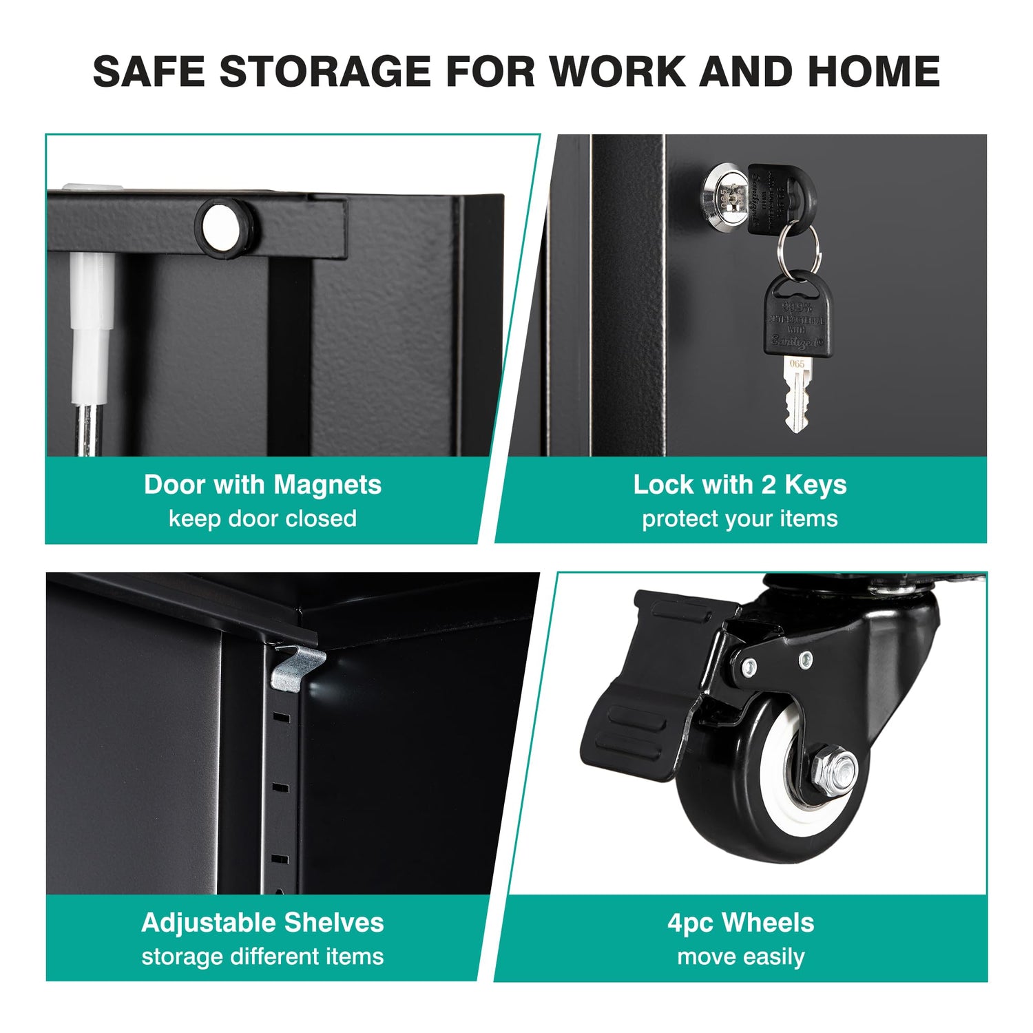 - DURABLE CONSTRUCTION: This metal storage cabinet on wheels features a sturdy cold-rolled steel frame and powder-coated finish, designed for long-lasting use and easy maintenance.;