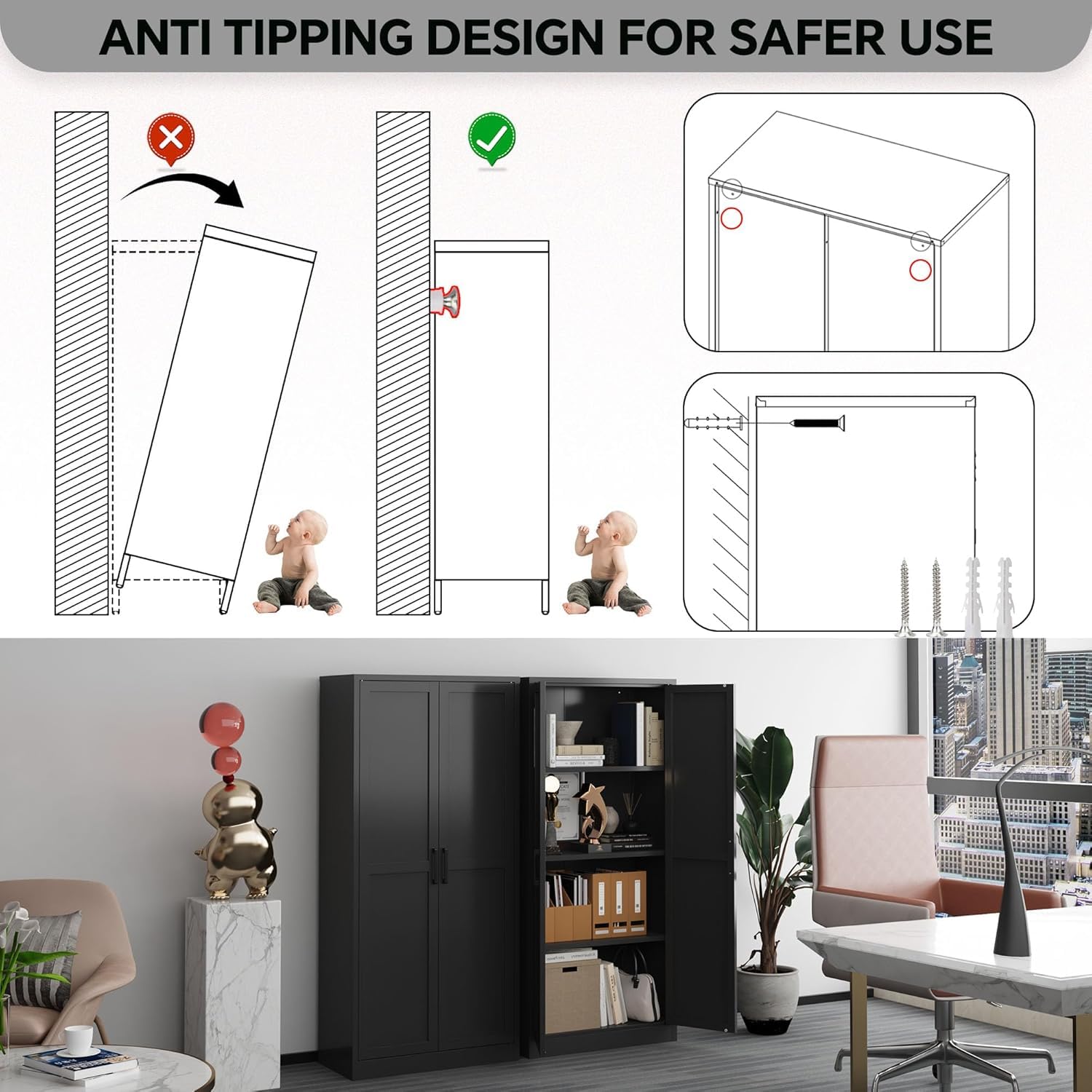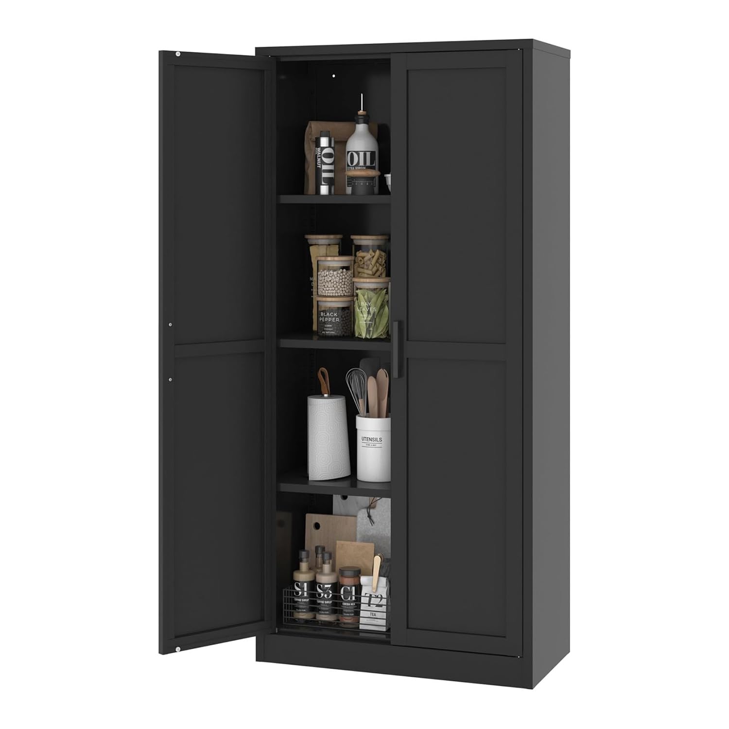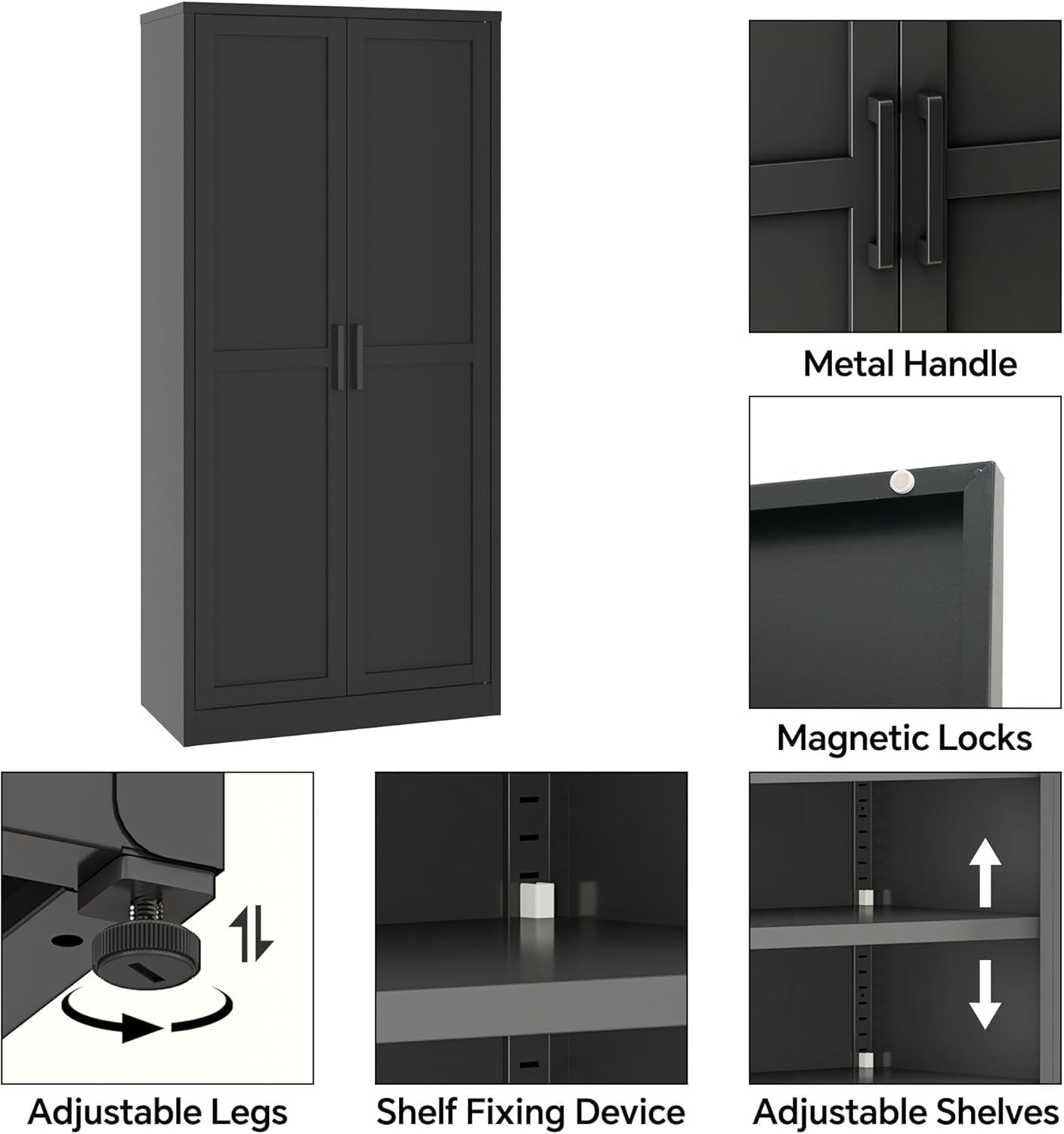 MIOCASA Metal Pantry Cabinet with Adjustable Shelves, Heavy-Duty Metal Storage Cabinet with 2 Doors Organizer for Kitchen, Office, Garage (Black)