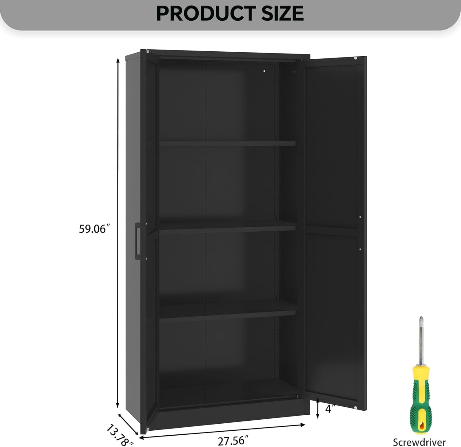 - 【 Versatile Organizational Solution】Ideal for storing tools, office supplies, cleaning equipment, or seasonal items, this 59.06 tall storage cabinet maximizes vertical space while keeping clutter securely contained.
