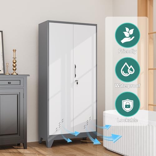 - 【Durable Construction】-Made of all-steel material and powder-coated, our broom closet cabinet is built to last. The high lockers with doors have strong corrosion resistance and rust resistance, making them more durable than wooden lockers. This ensures that your items are safely stored and protected for a long time
