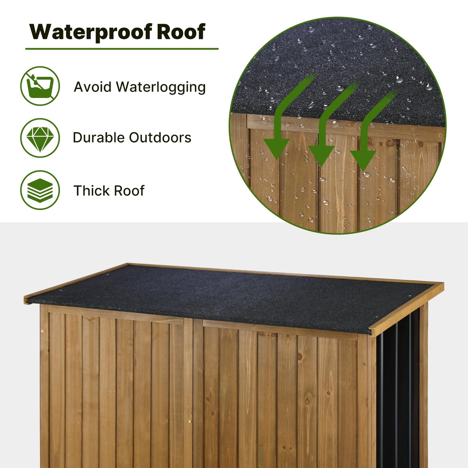 - Durable Wood & Metal Construction: Crafted from a combination of wood and metal, this outdoor storage cabinet is designed for enhanced durability. The robust construction ensures a long-lasting and weatherproof garden tool shed, capable of resisting rainwater and enduring various outdoor conditions