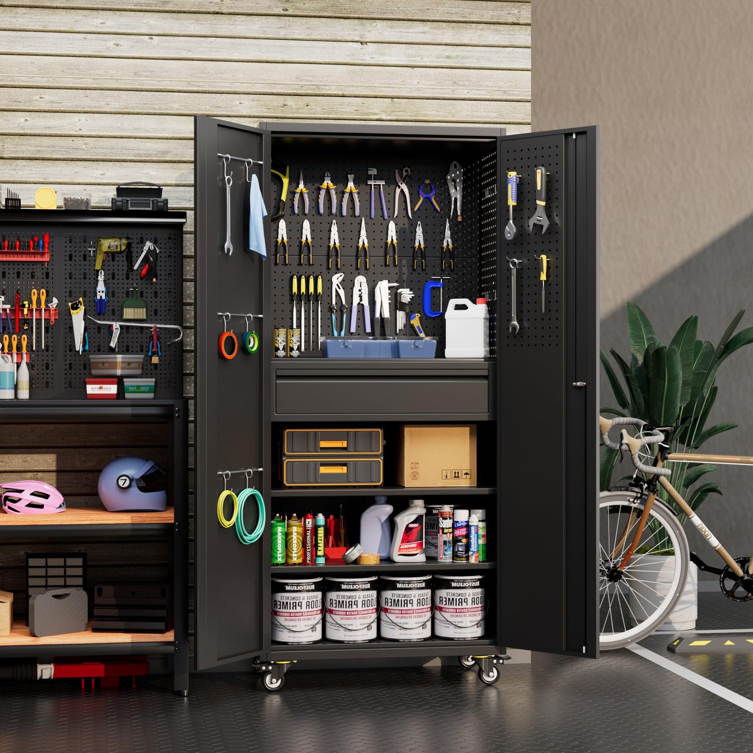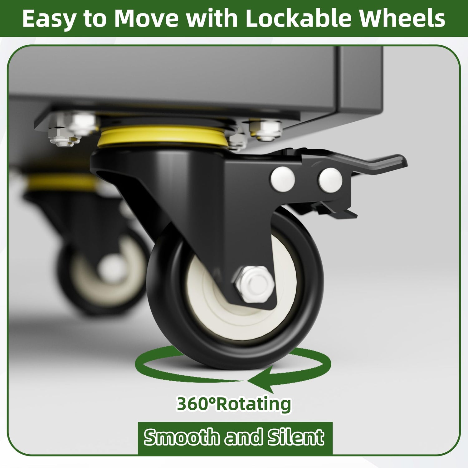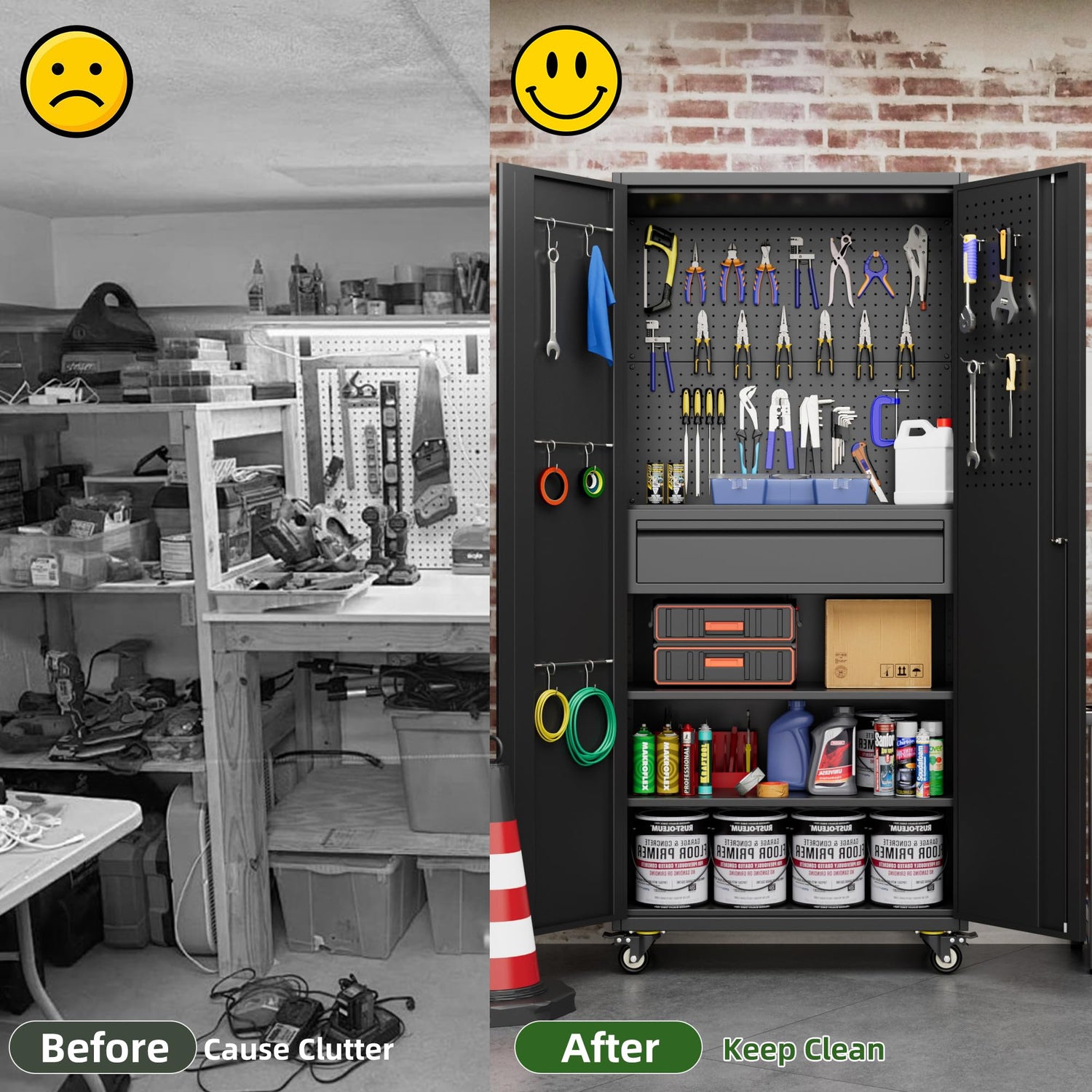 - Rotatable and lockable Wheels: Garage storage cabinet come with 4 rubber casters (doesn't hurt wood/ceramic floors), can be locked, giving you the freedom to move the tool cabinet to where you want to store it. And the cabinet rolling wheels can be locked or removed for your differenct needs.