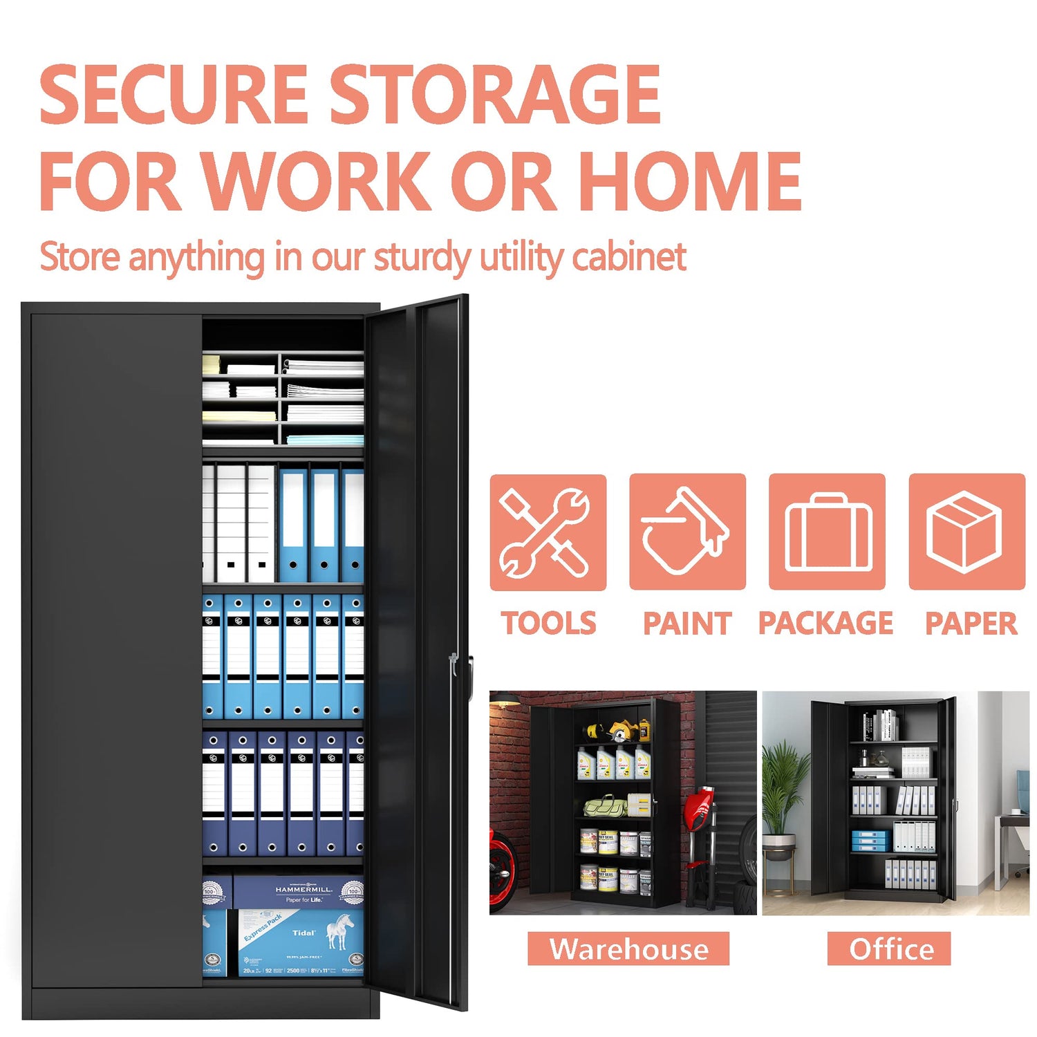 - 【Adjustable shelves】The metal storage cabinet has four height-adjustable shelves inside for flexible storage of various sizes of items. The flexible storage design is perfect for home and office use.
