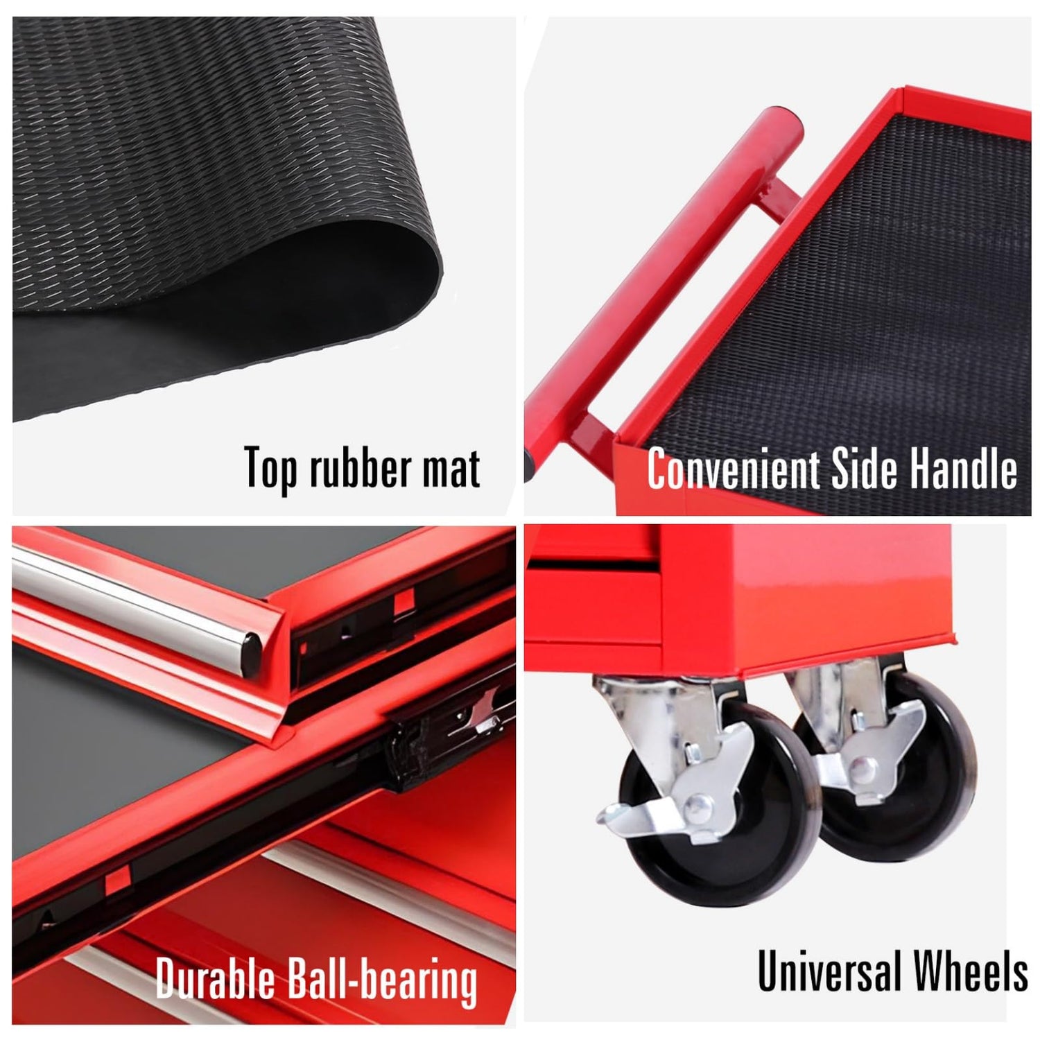 • Easy to Move: Equipped with 4 steering wheels, including 2 with parking brakes, this rolling tool box allows for effortless mobility in your garage or workshop. The 360° flexible universal wheels and smooth ball-bearing drawer slides minimize noise and protect your tools during movement