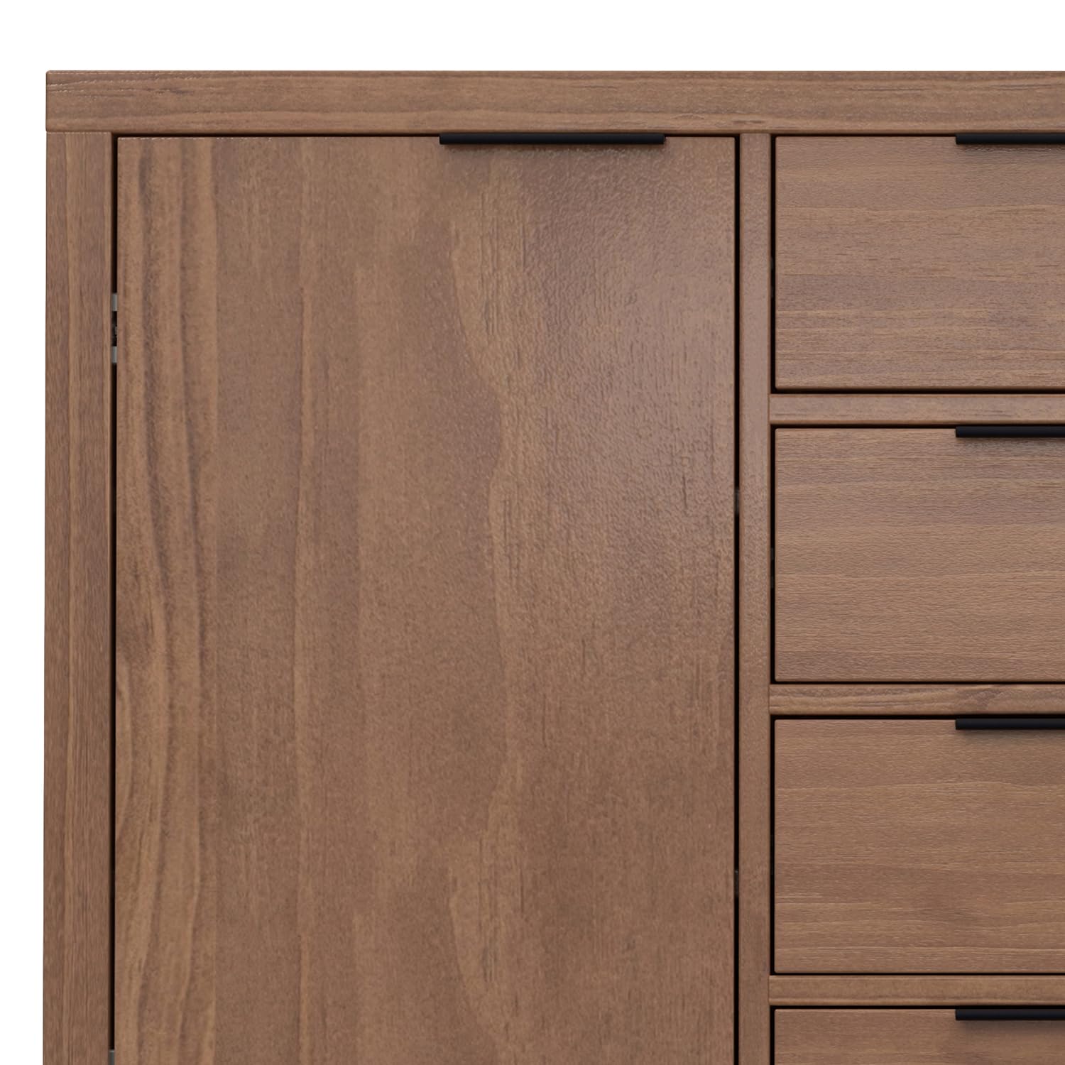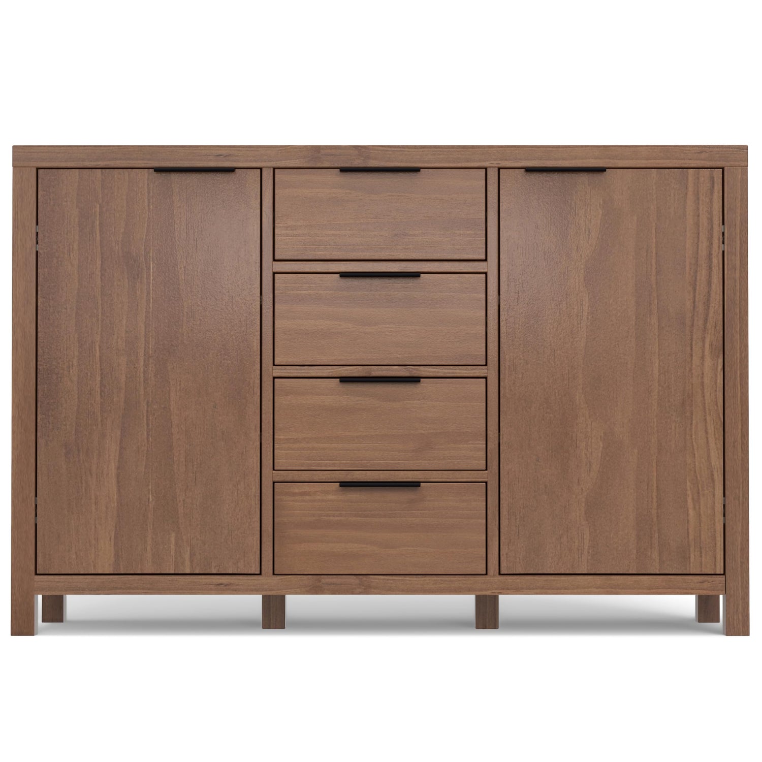 Details: The Hollander Collection is modern in sensibility with crisp, clean lines. Nevertheless, it remains warm and homey due to its stained solid wood construction. The Hollander Sideboard Buffet Credenza is generously sized at 54-inches wide and works well in your dining room, living area, or home office. It features four drawers with high-quality ball-bearing glides and two cabinets with two adjustable shelves on each side. This piece is great for storing your cutlery, fine china, or serving trays. Plus, the top surface can be used as a serving station when hosting, or as a spot for vases, plants, and other decorative objects.