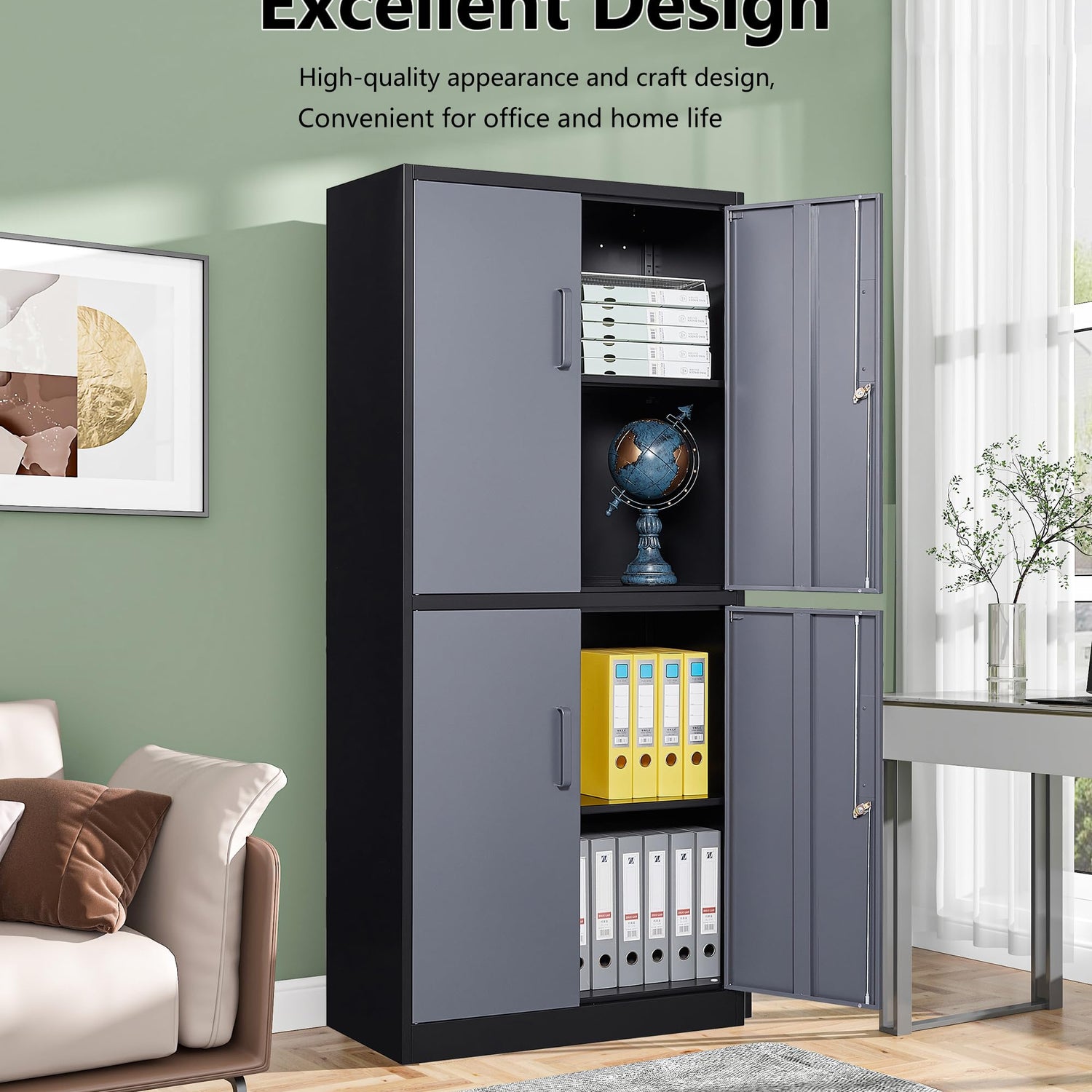 • 【Upgraded 3pcs Adjustable Shelf 】Metal storage cabinets come with locks and 3 adjustable garage shelving for adaptability and convenience, locking storage cabinet to protect valuables, two keys are included. Whatever your storage needs, you can create a unique storage space that suits them
