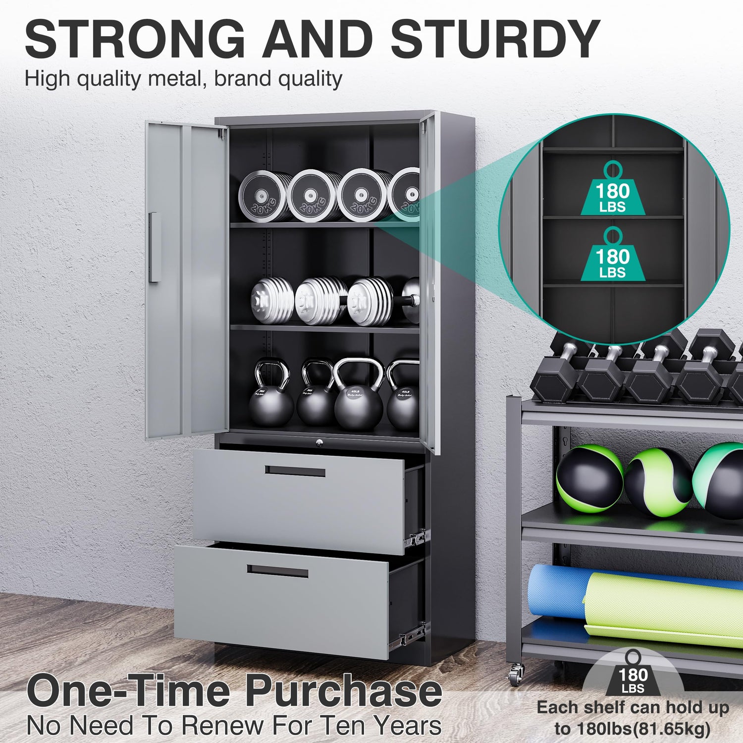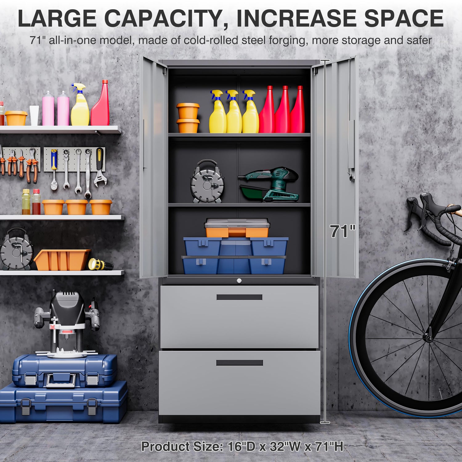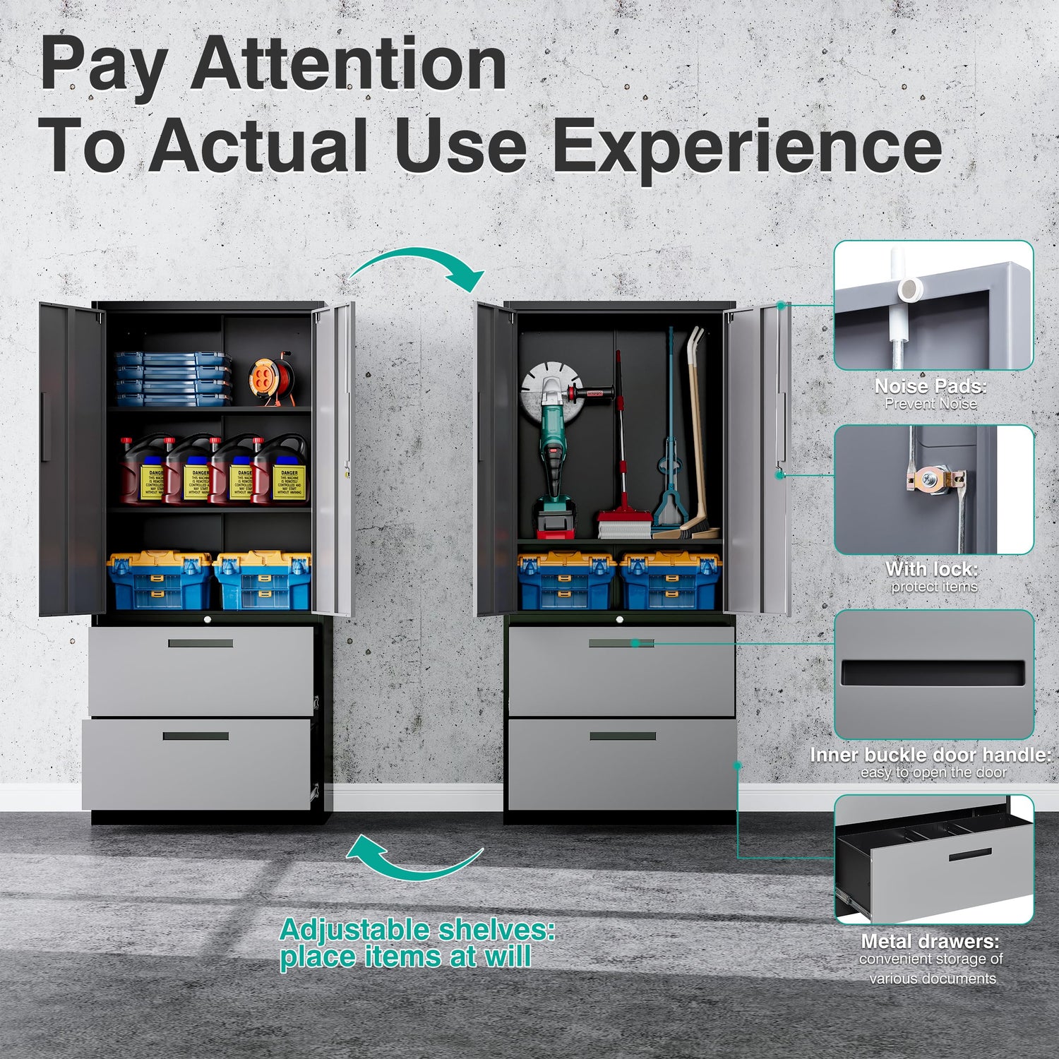 Details: SISESOL Metal Storage Cabinet with Drawers, 71" File Cabinets for Home Office, Locking Steel Storage Cabinet with Doors and Shelves for Home, Office, Warehouse, Garage, School (Gray, 2 Drawers)