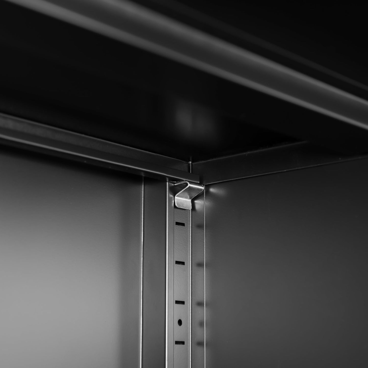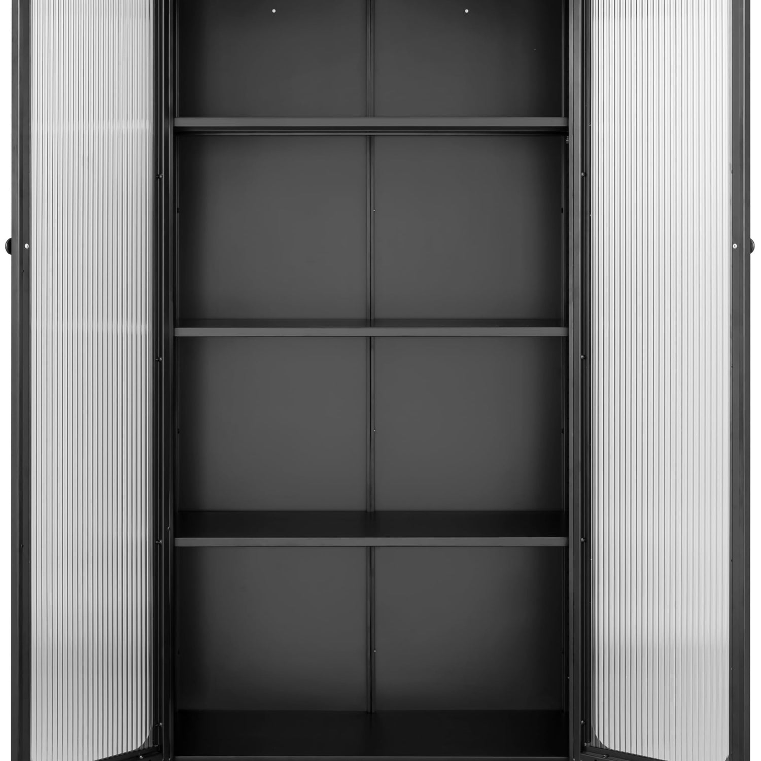 - Sturdy,Durable and Safe: Made of powder-coated steel plate, this black metal glass cabinet is sturdy,durable and easy to clean.Load capacity is up to 120lbs each shelf. The included anti-tip kit helps secure the pantry cabinets to the wall to give you a safer living space.
