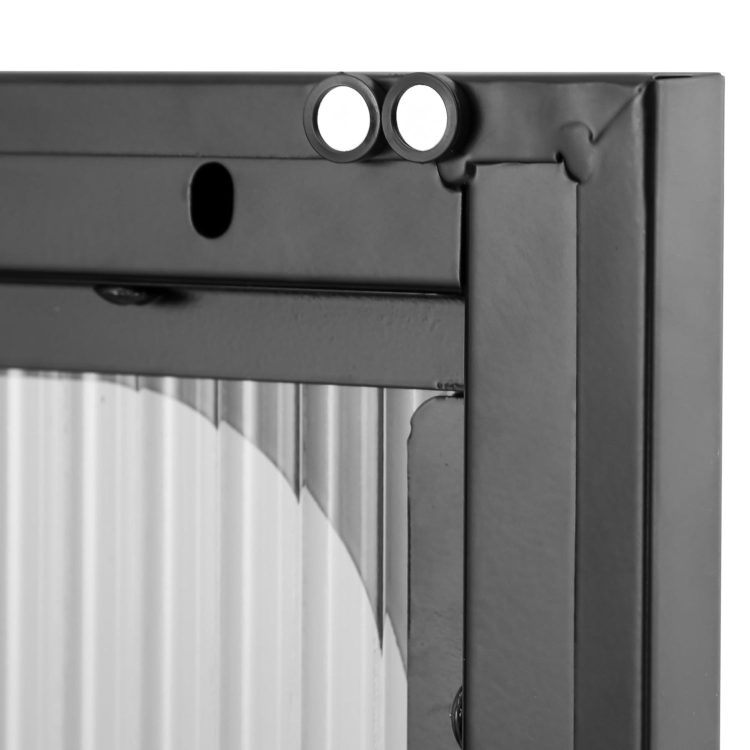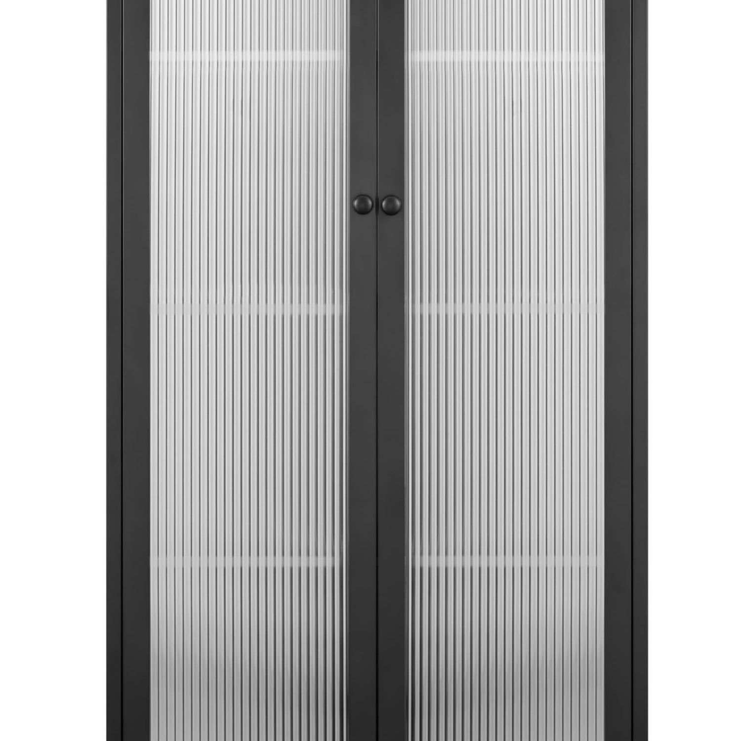 - 2 Fluted Glass Doors,3 Pros: With 2pc Fluted glass doors, easy to locate items inside the glass cabinet. Door with Magnets keep the freestanding pantry cabinet closed. Eye-catching Handle provide fashion elements for storage cabinet.
