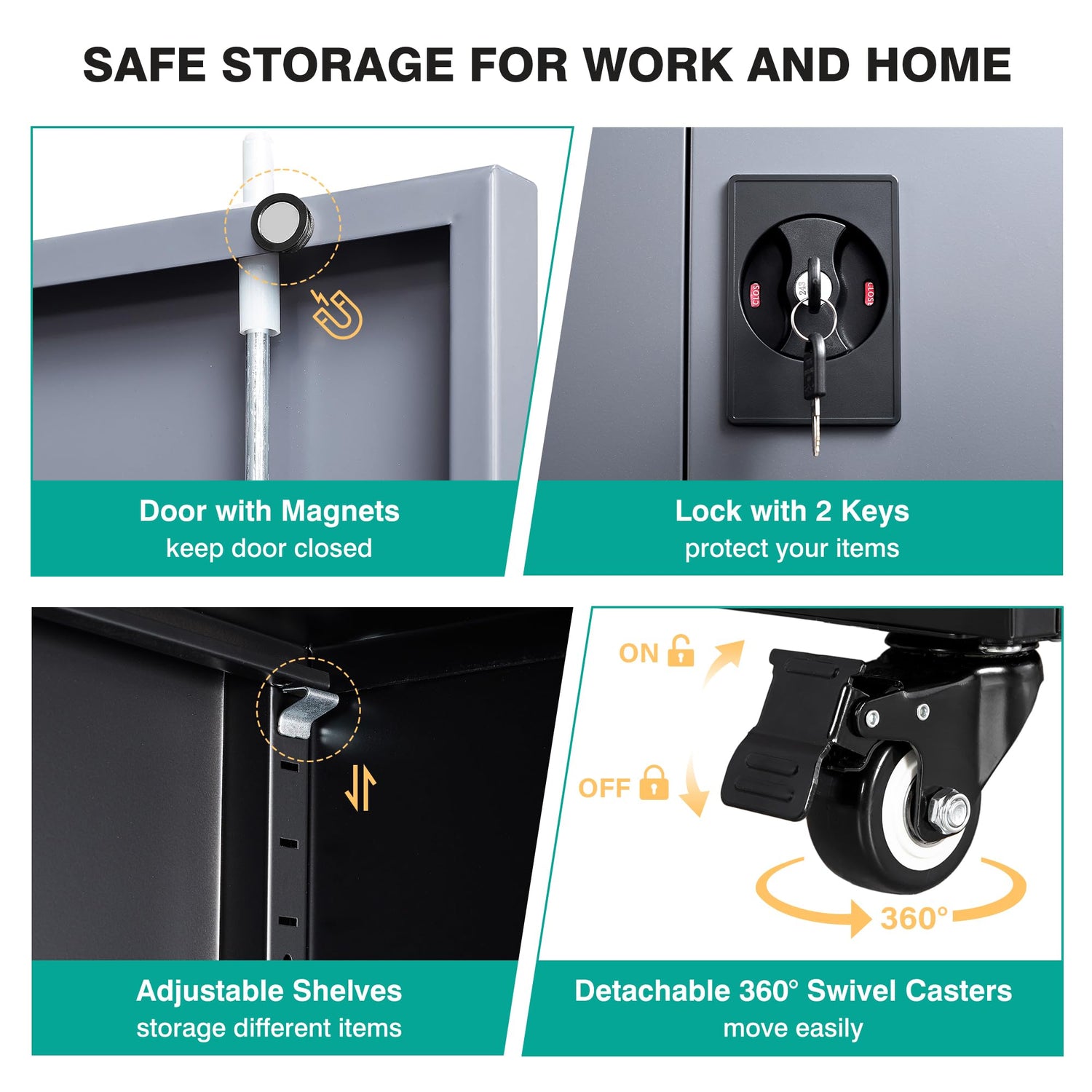 • ✔️☆【Detachable & Lockable 360° Swivel Casters - Adjust As Needed】:Metal storage cabinet on wheels is easy to move around.It has a strong and durable metal frame with excellent load-bearing capacity, allowing you to store enough items.