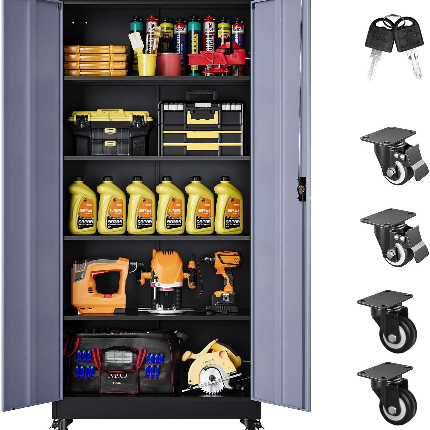 • ✔️☆【5 Tiers for Large Capacity】: Lockable garage cabinets storage uses 4 adjustable shelves. You can move to the desired height by adjusting the shelf according to the size of the things. so that you can divide the tool cabinet space distribution. You can also design garage storage flexibly and remove the shelves for more standing room.