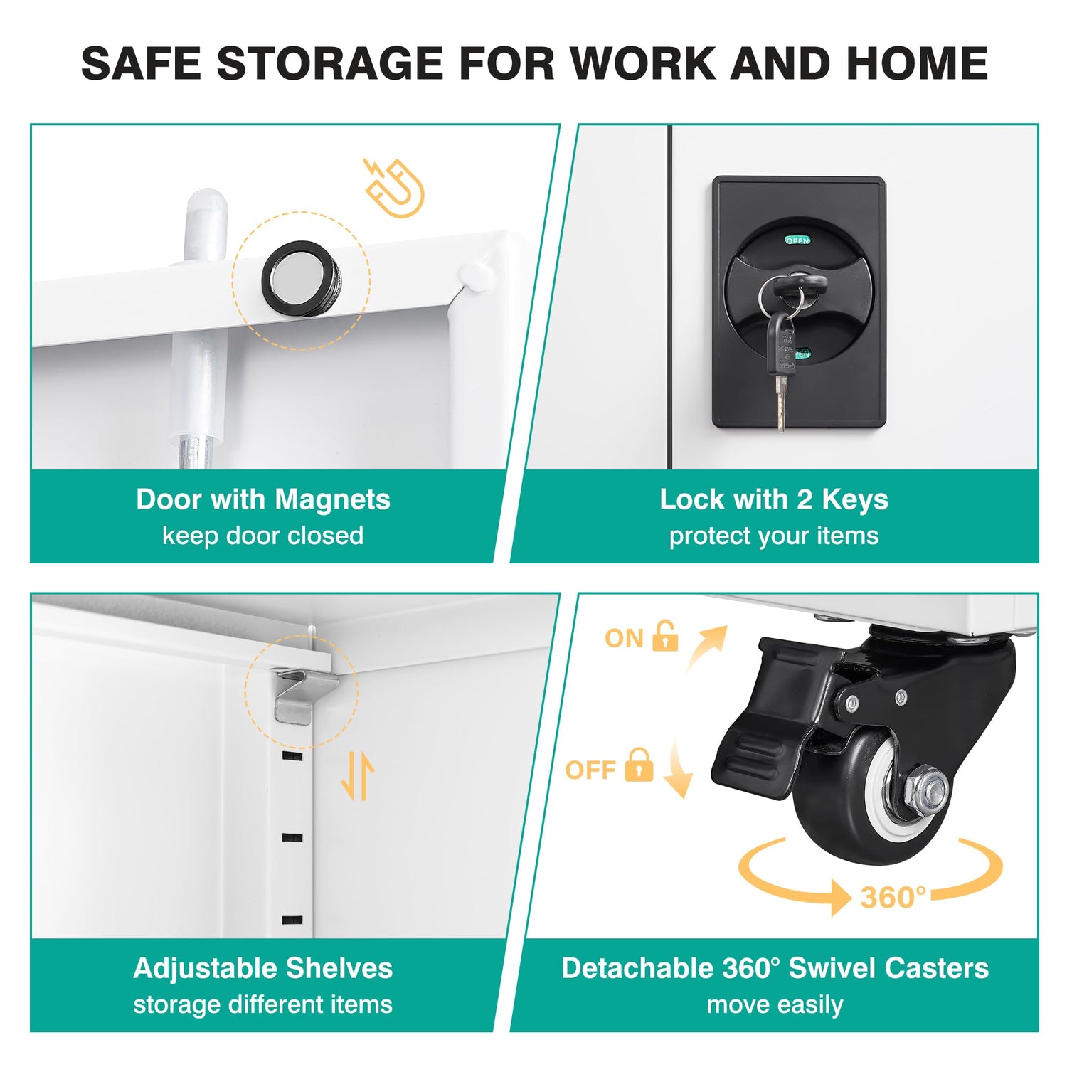 • ✔️☆【Detachable & Lockable 360° Swivel Casters - Adjust As Needed】:Metal storage cabinet on wheels is easy to move around.It has a strong and durable metal frame with excellent load-bearing capacity, allowing you to store enough items.