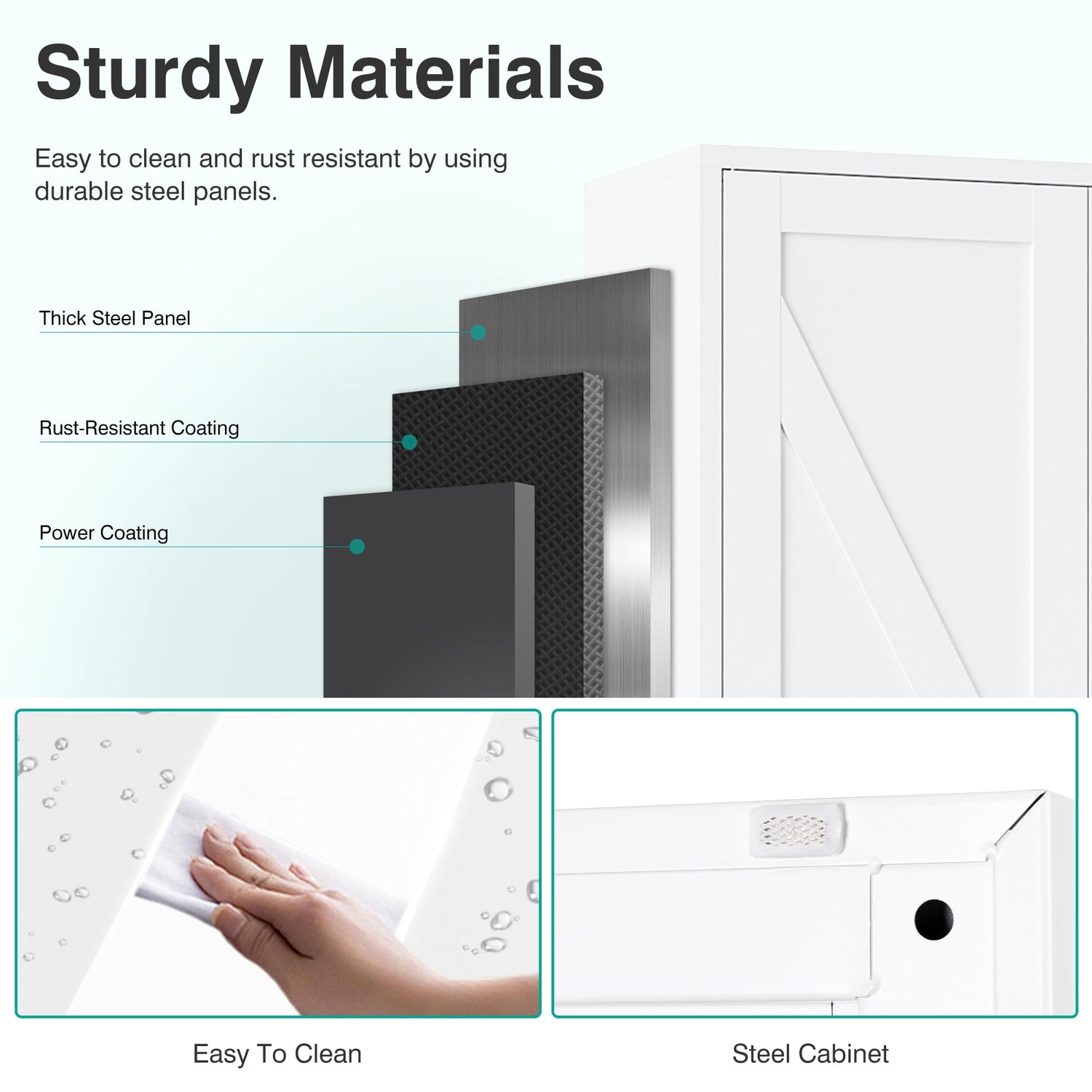 - Sturdy,Durable and Safe: Made of powder-coated steel plate, wide & deep cabinet with door and shelf is sturdy,durable and easy to clean.Load capacity is up to 120lbs each shelf. The included anti-tip kit helps secure the pantry cabinets to the wall to give you a safer living space.