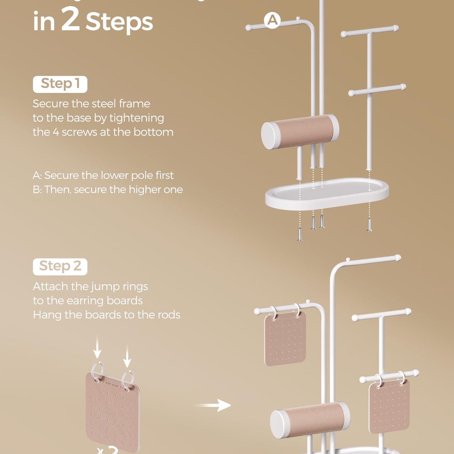 - [Easy-Peasy Assembly] Just attach the steel frame using the provided screws, and then it's ready to showcase your favorite jewelry collection